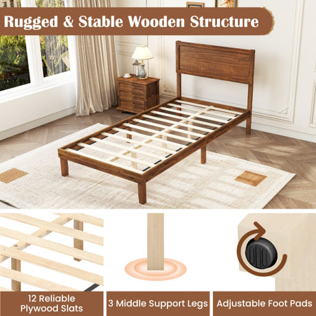 Twin/Full/Queen Size Bed Frame with Headboard and Wooden Slats Support-Twin Size