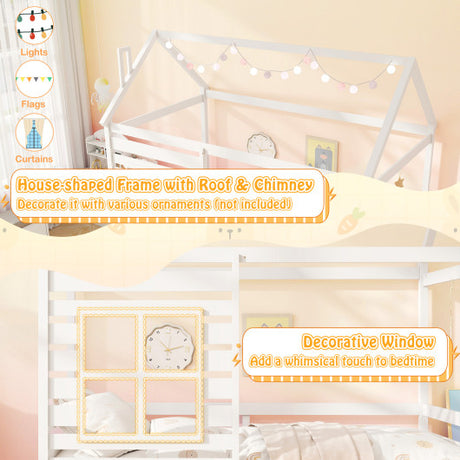 Twin Size House Bed Kids Montessori Bed with House-Shaped Storage Headboard-White