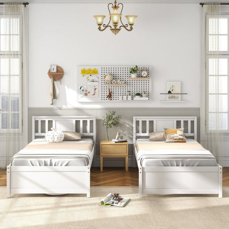 Wooden Platform Bed with Headboard and Wood Slat Support White-Twin Size
