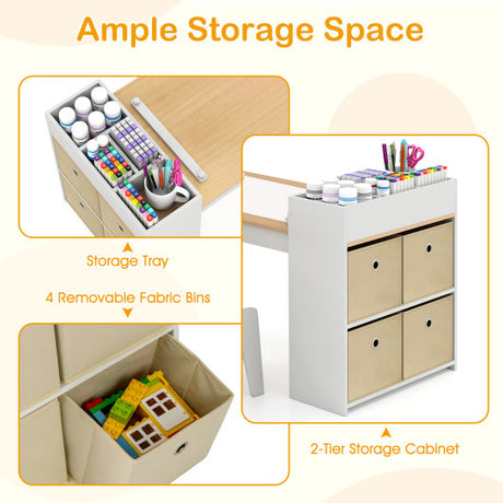 5 PCS Kids Table and Chair Set with Storage Stools for Activity-White