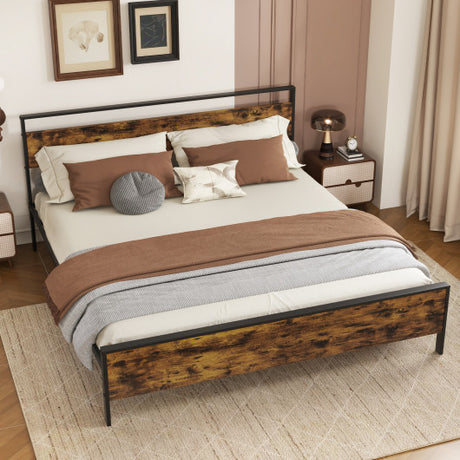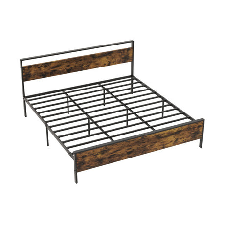 Queen Metal Bed Frame Industrial Platform Bed with Wooden Headboard-Queen Size