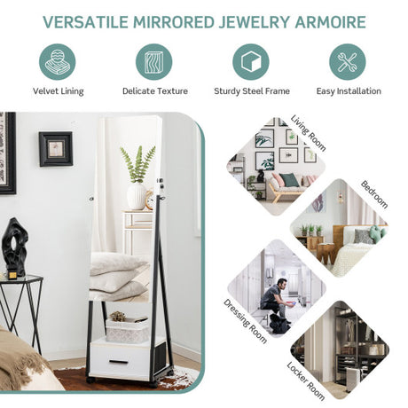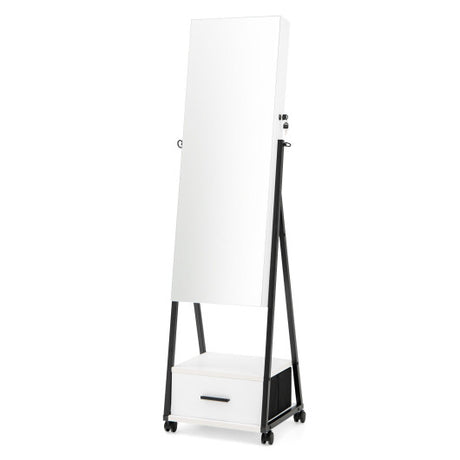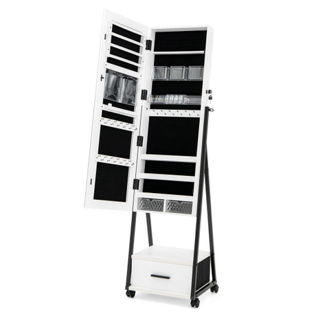 Mirrored Standing Jewelry Cabinet Storage Box-White