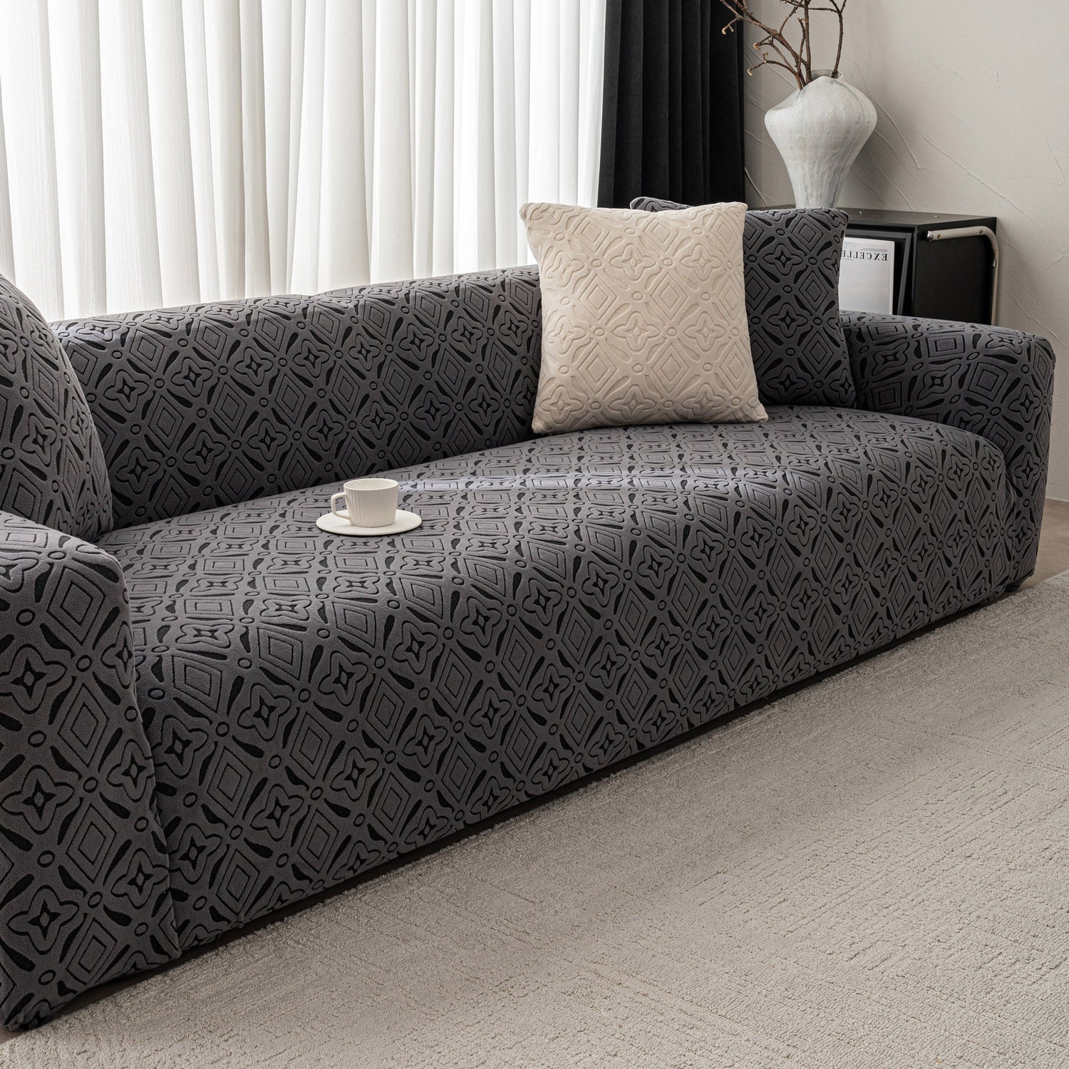 3D Jacquard Geometric Sofa Cover, High Stretch Soft Polar Fleece Slipcover for Couch
