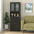 64.5 Inches Tall Bathroom Storage Cabinet with Frost Glass Doors and Shelves-Black