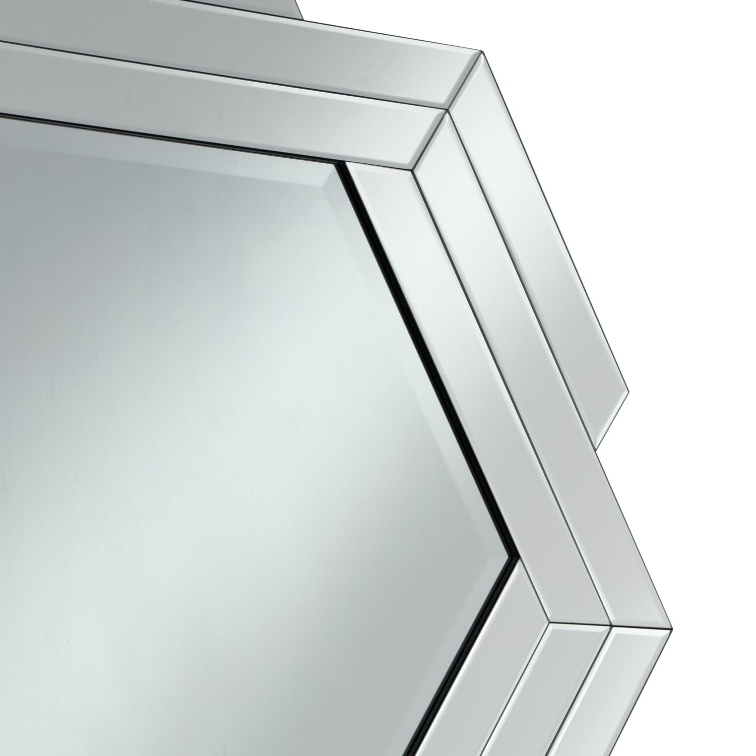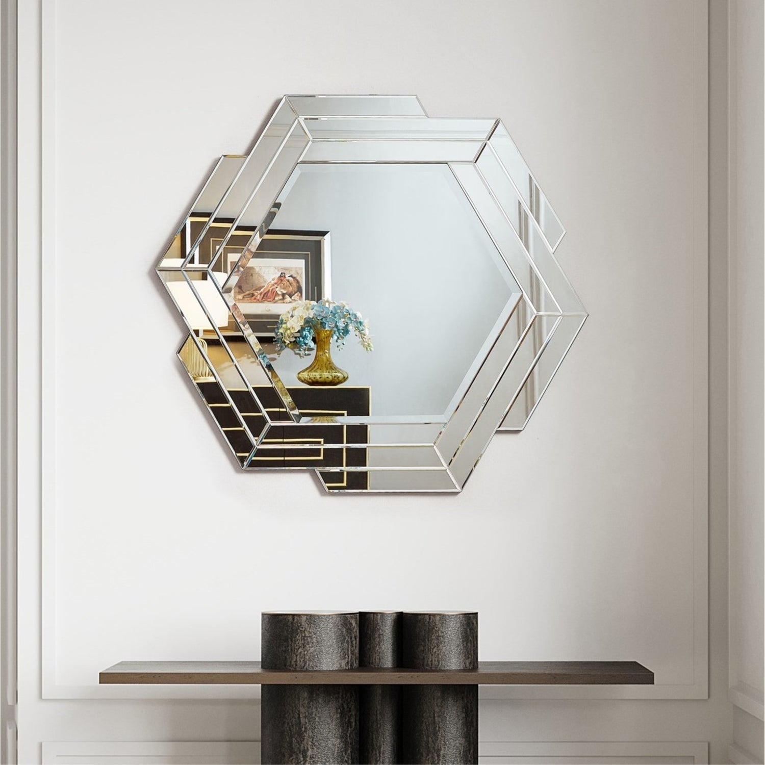 - GLAM DESIGN – This gorgeous modern luxe hexagon wall mirror with outer reflective mirror tiles in beveled finish creates a complete and unique accessory that brings elegance to any room and brightens up wall space.