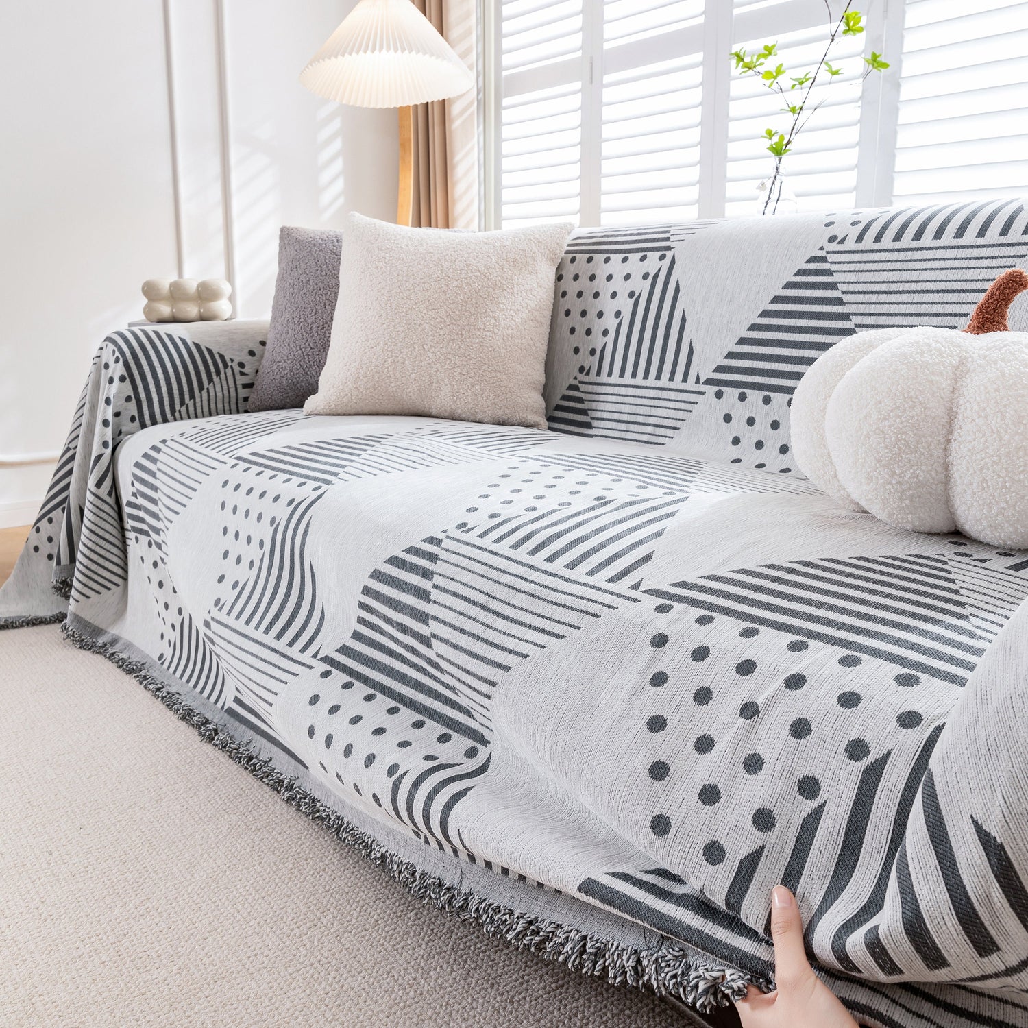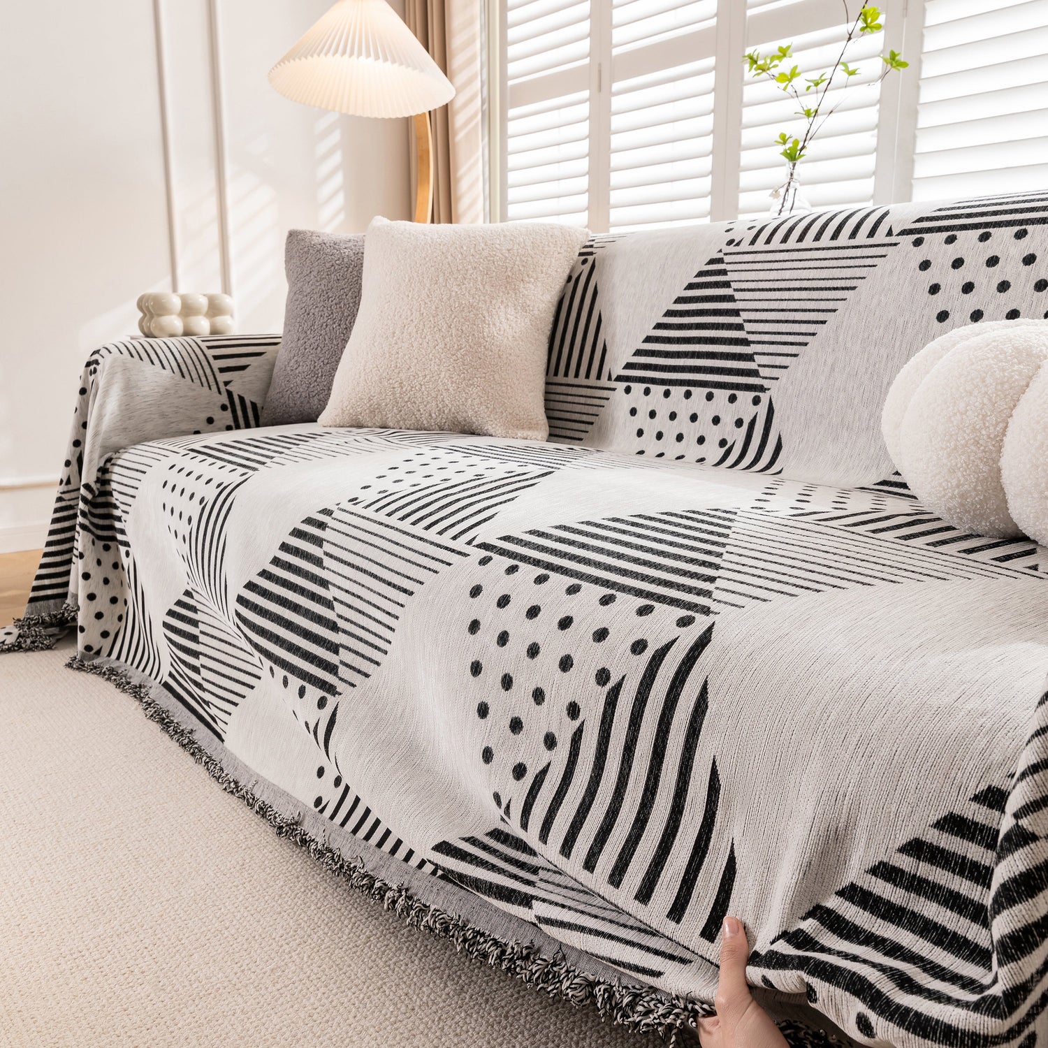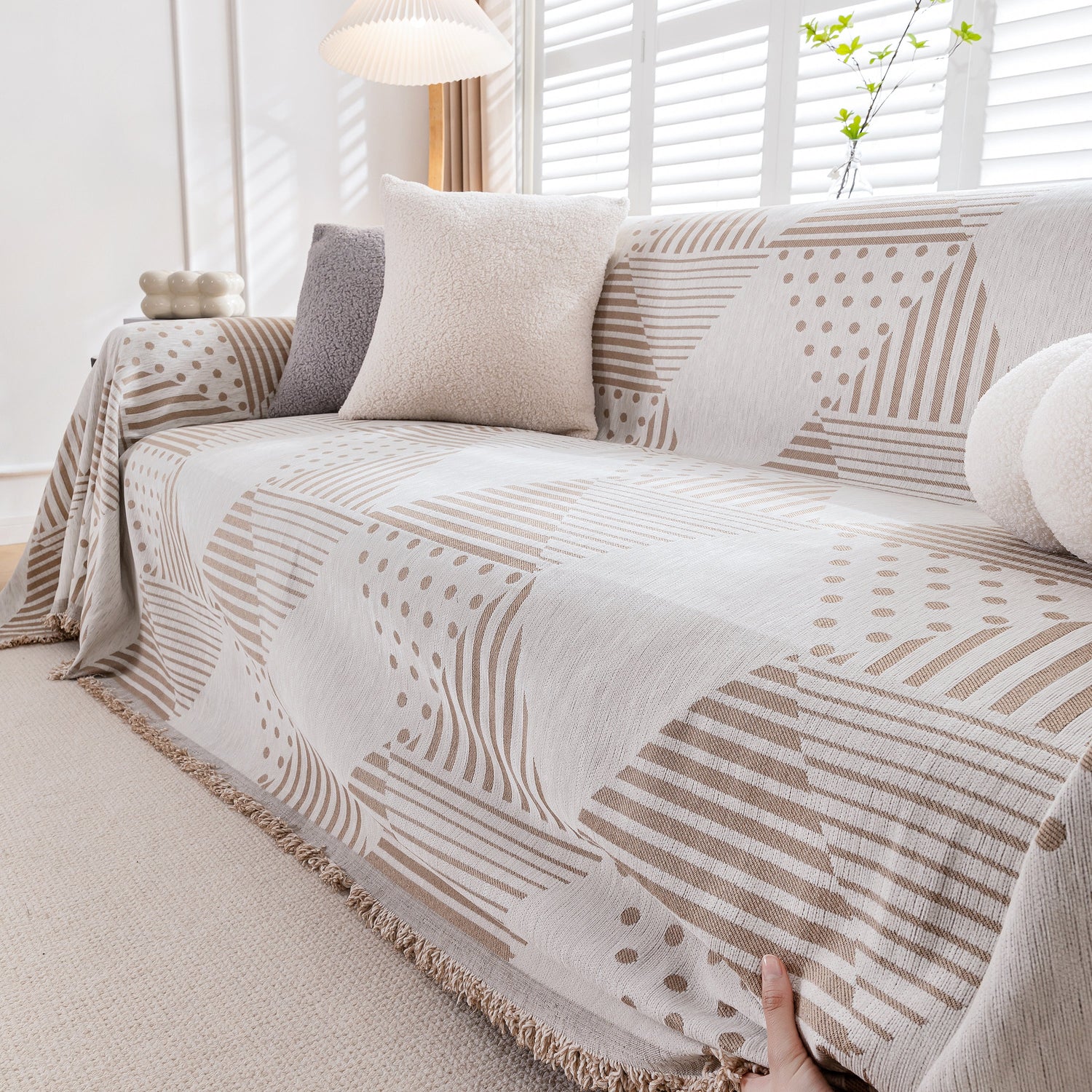 Discover our stylish Chenille Geometric Patterned Sofa Throw, designed for couch covers on sectionals, ideal for pet owners. Protect your sofa with our durable and scratch-resistant throw cover.