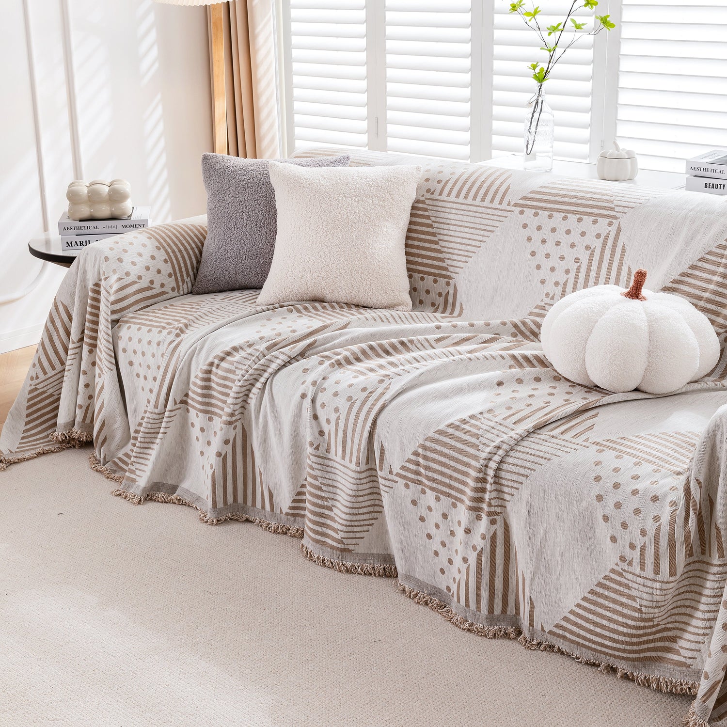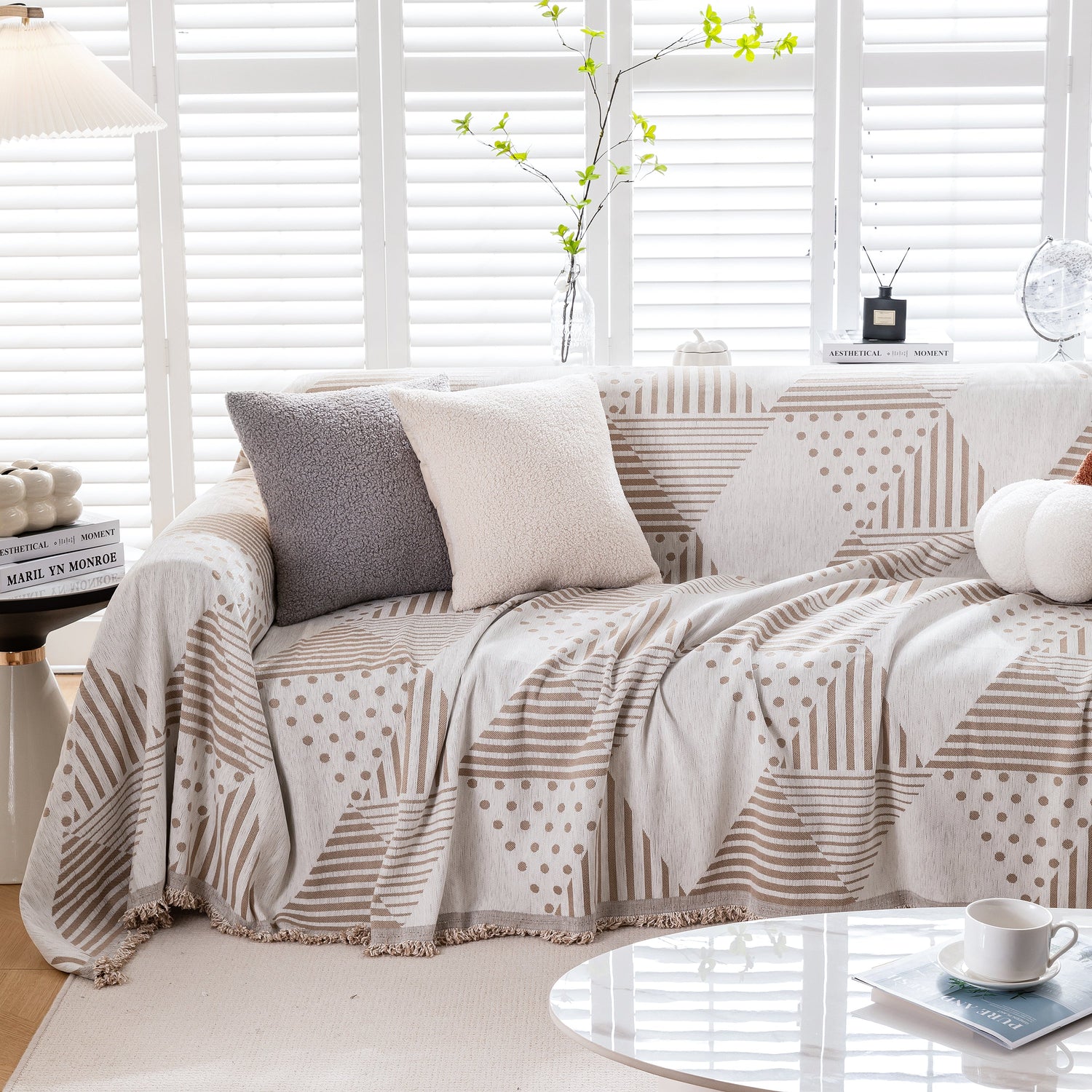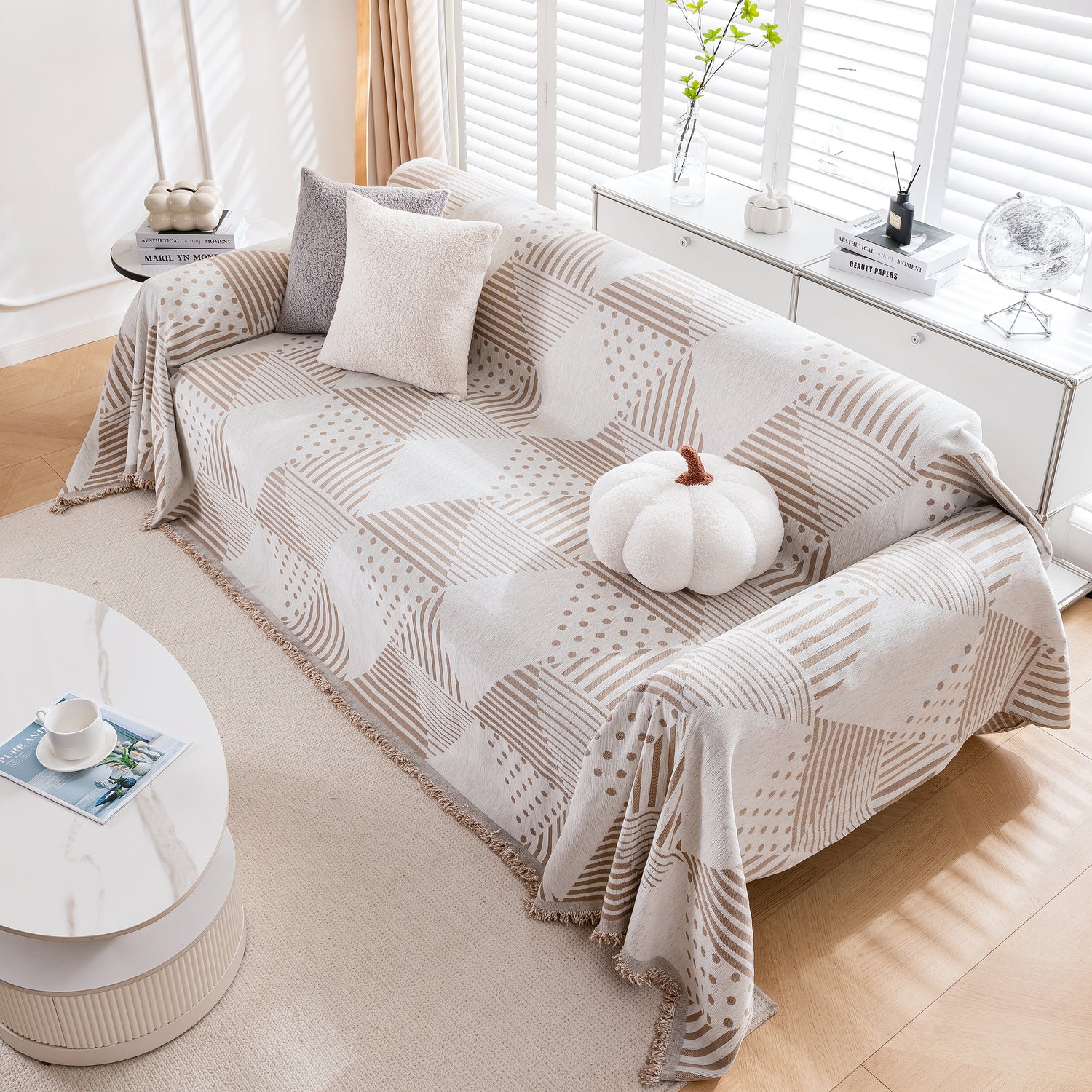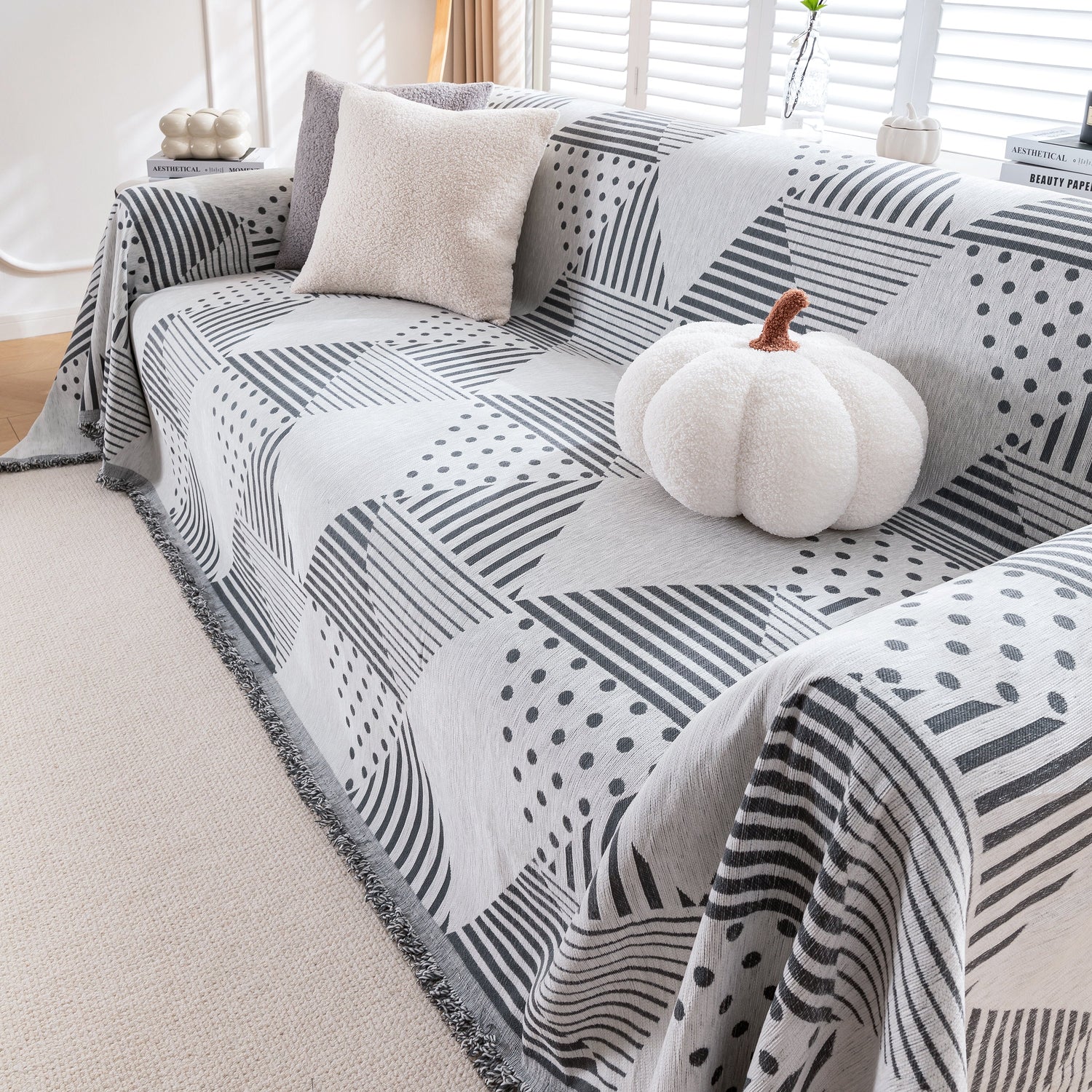Discover our stylish Chenille Geometric Patterned Sofa Throw, designed for couch covers on sectionals, ideal for pet owners. Protect your sofa with our durable and scratch-resistant throw cover.