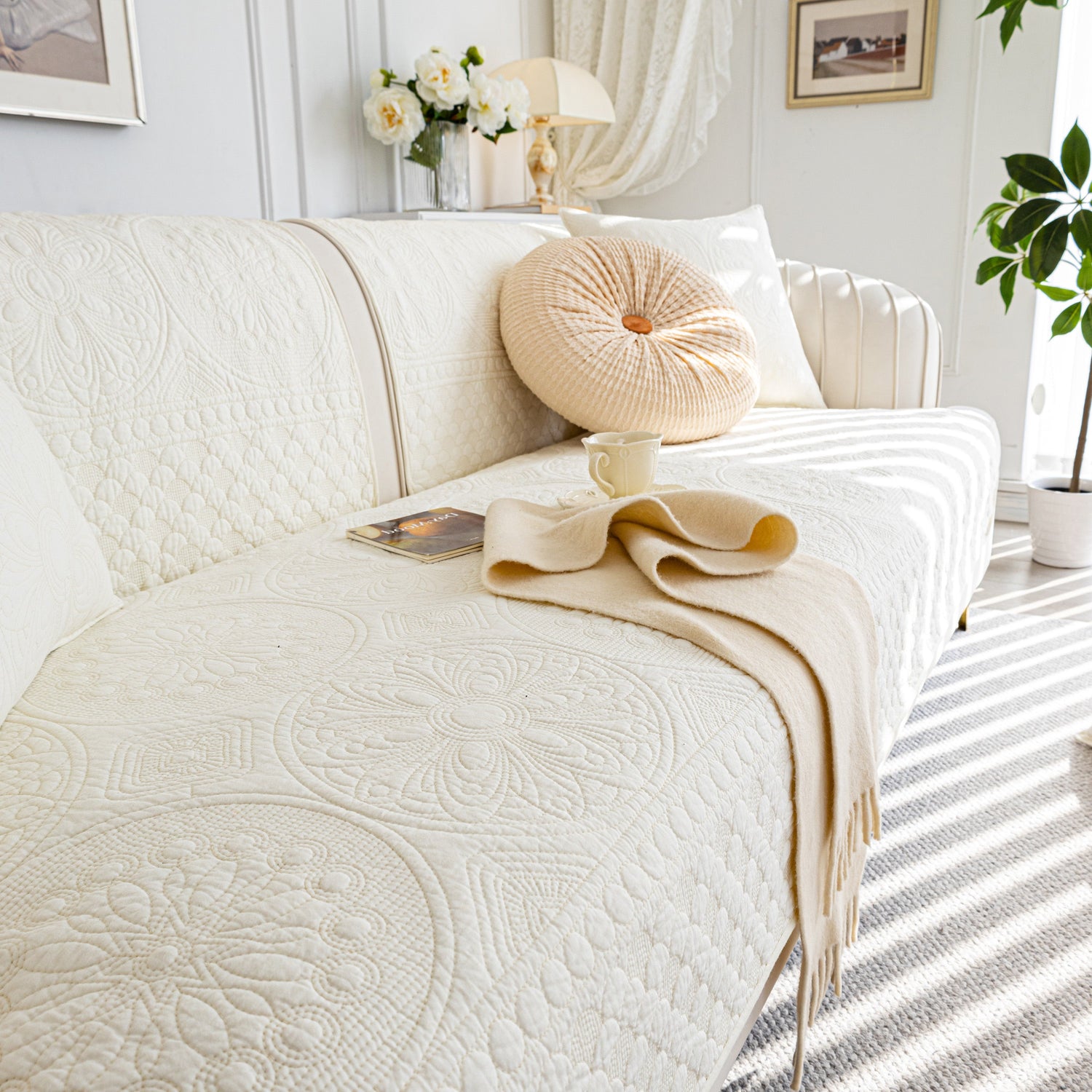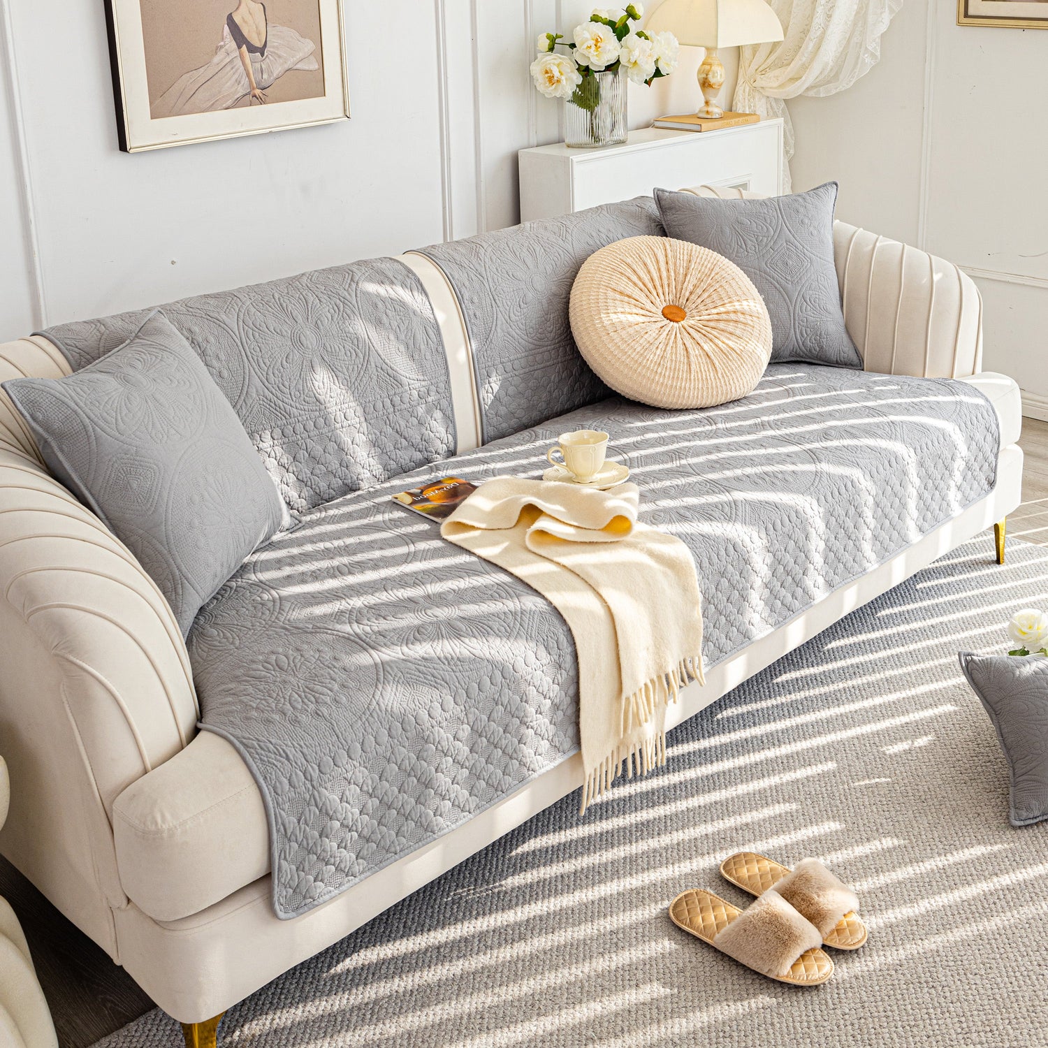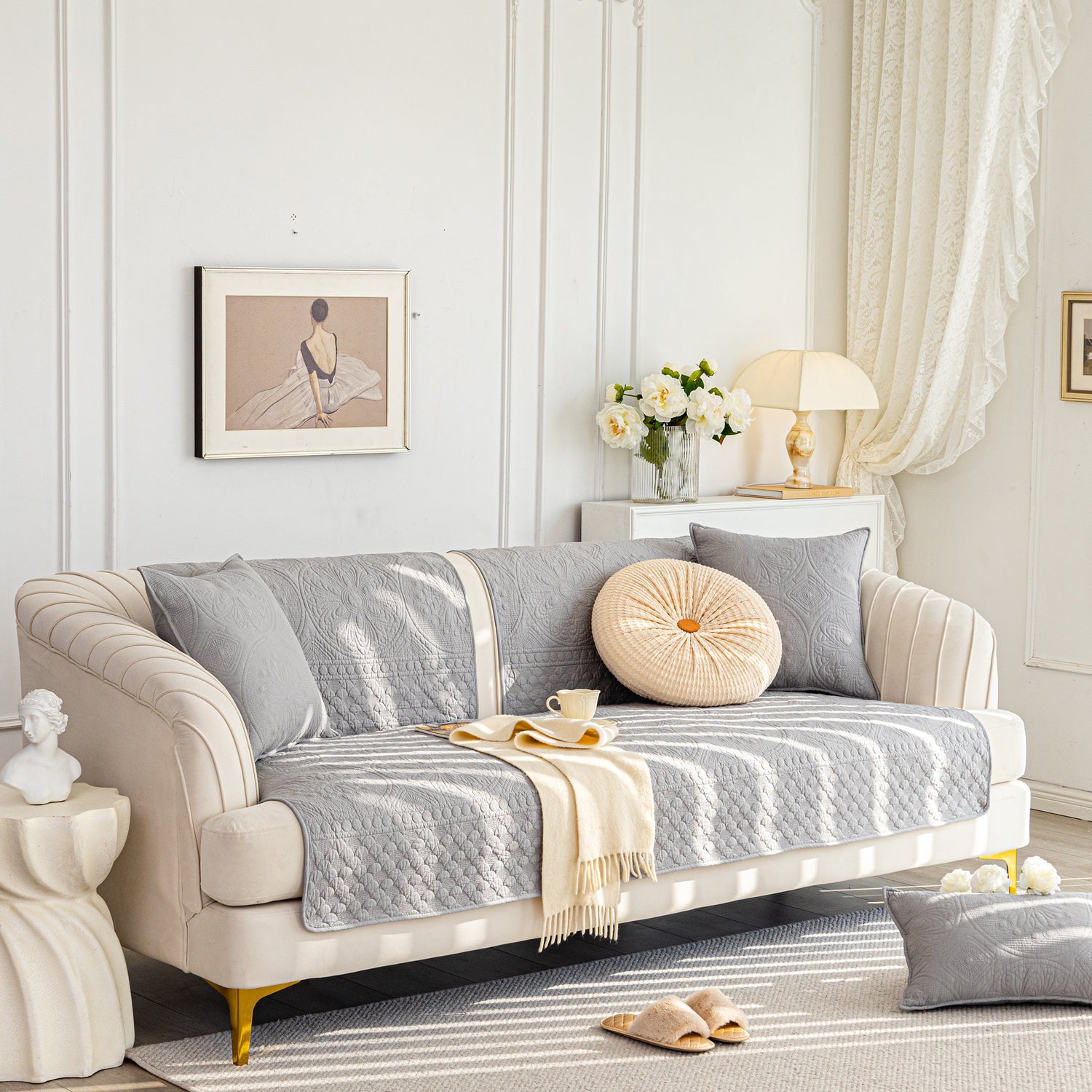 Designed in separate pieces for the backrest, seat, and armrests, this slipcover fits snugly on a variety of sofa styles and allows for easy removal and cleaning. The intricate quilted pattern adds a refined, decorative touch, making it as beautiful as it is practical. Whether you want to refresh an old sofa or preserve a new one, this cover brings warmth, texture, and all-season comfort to your home.