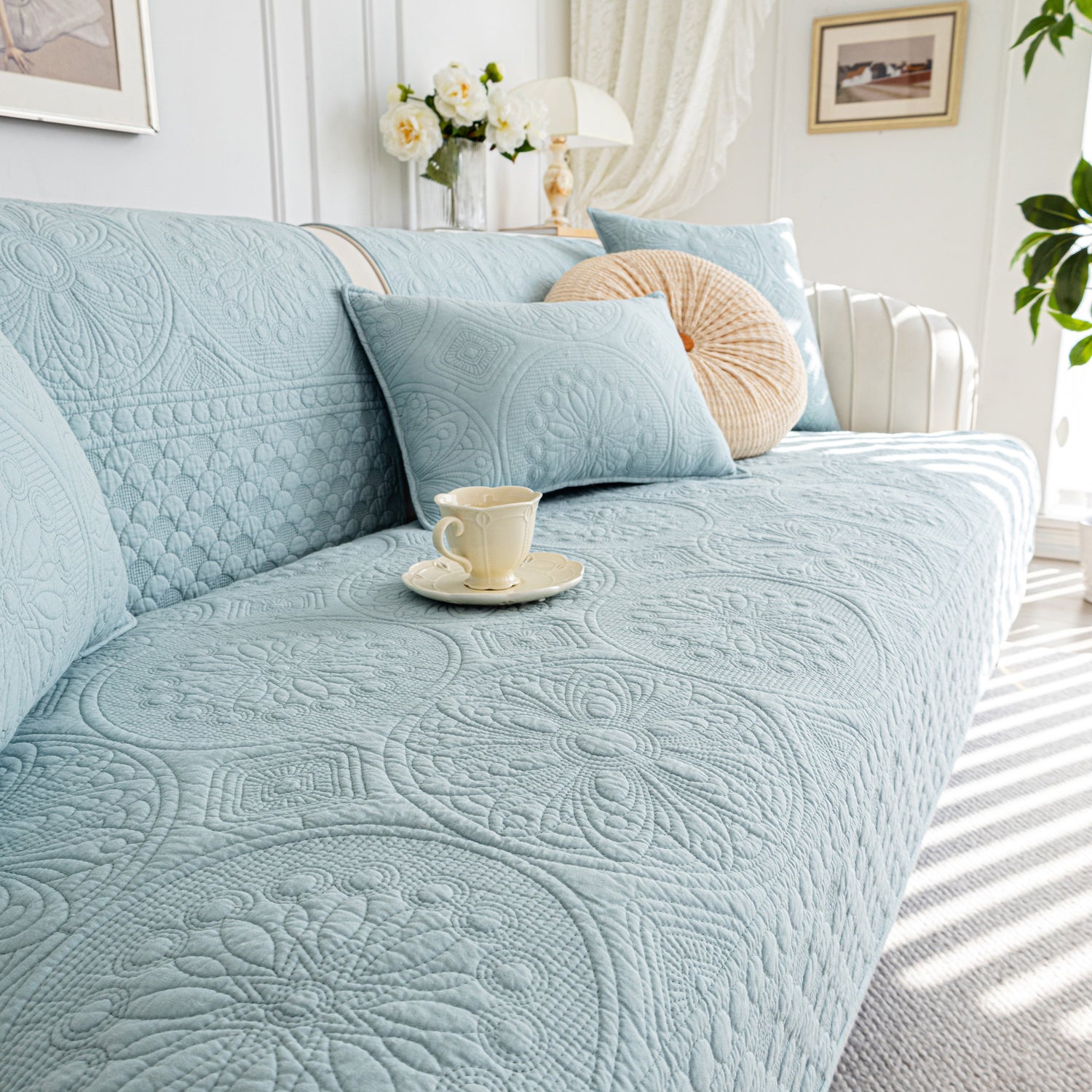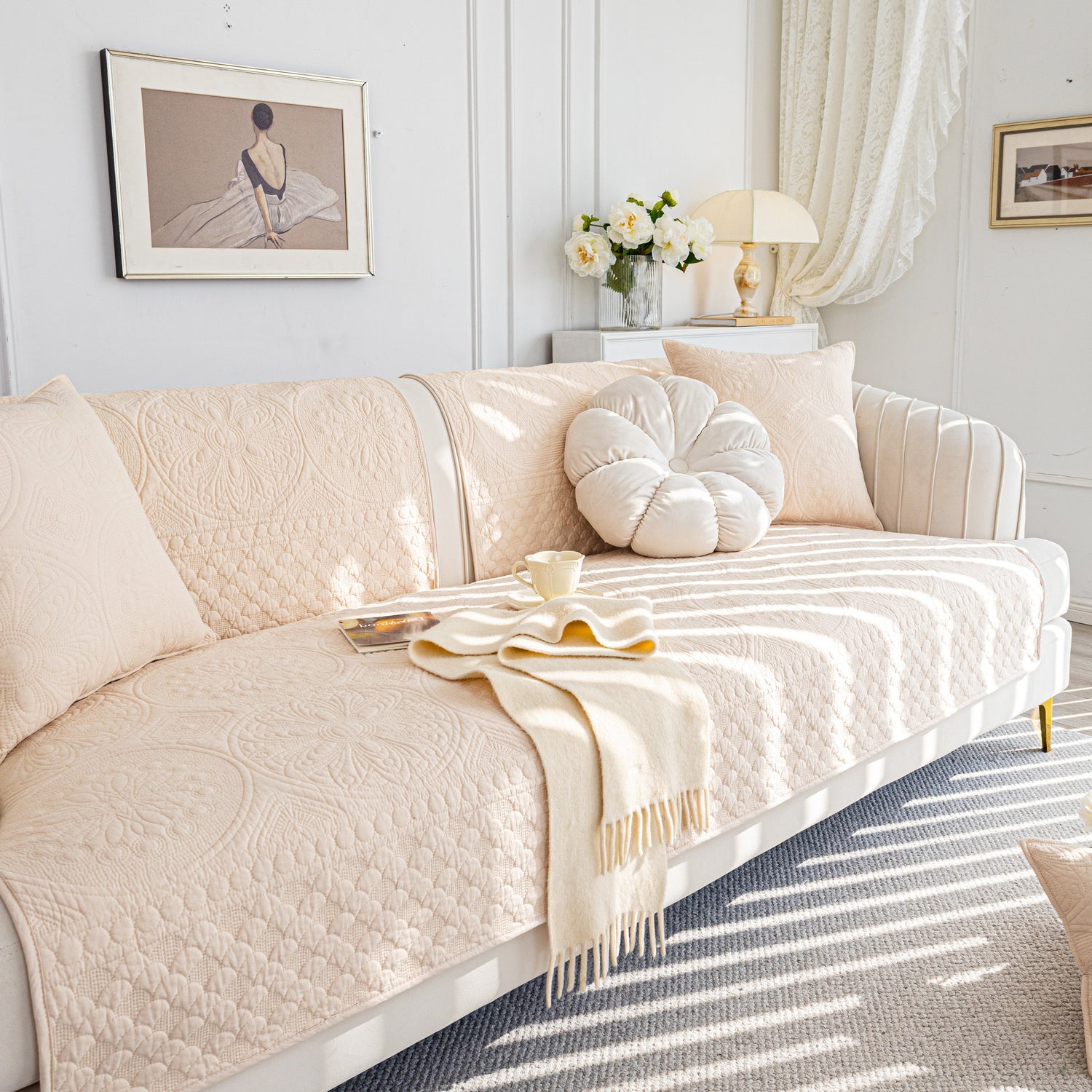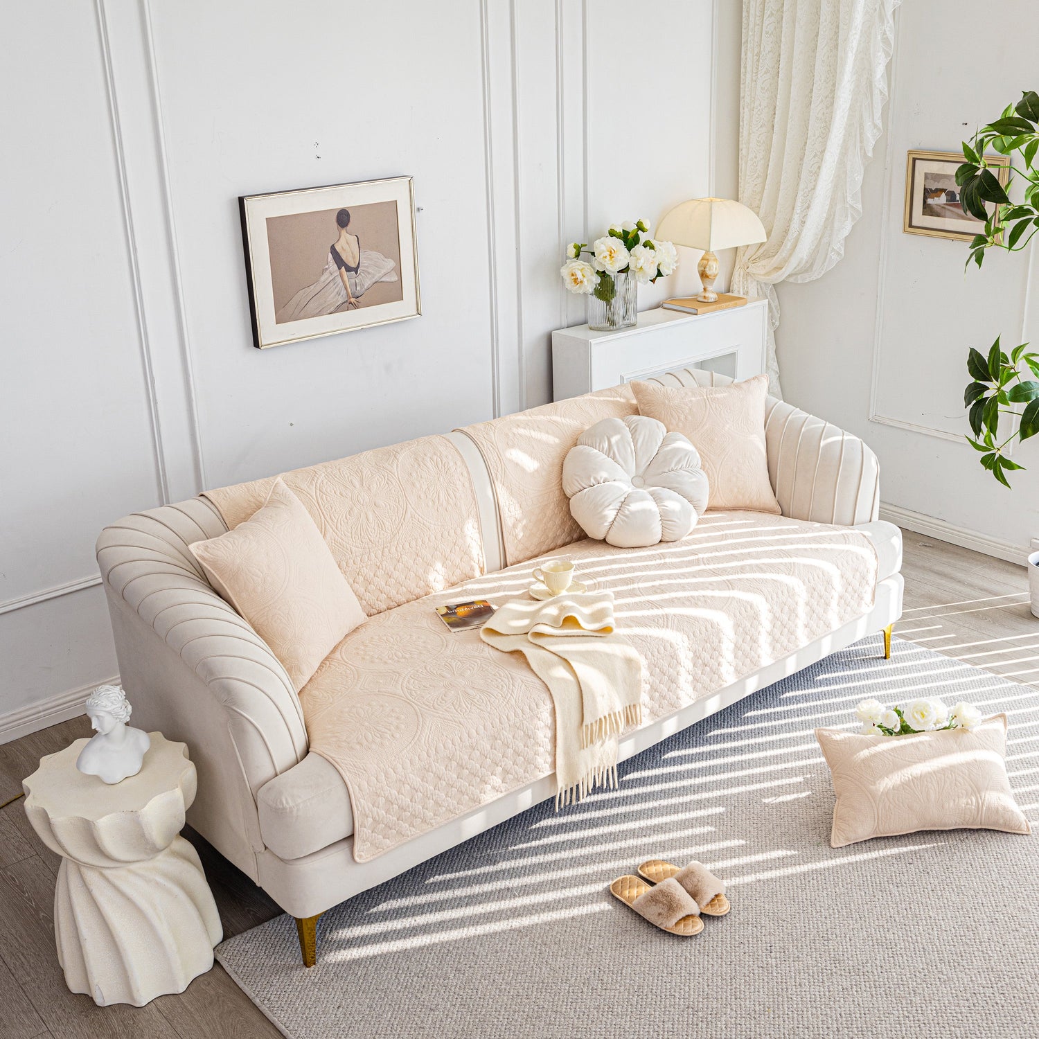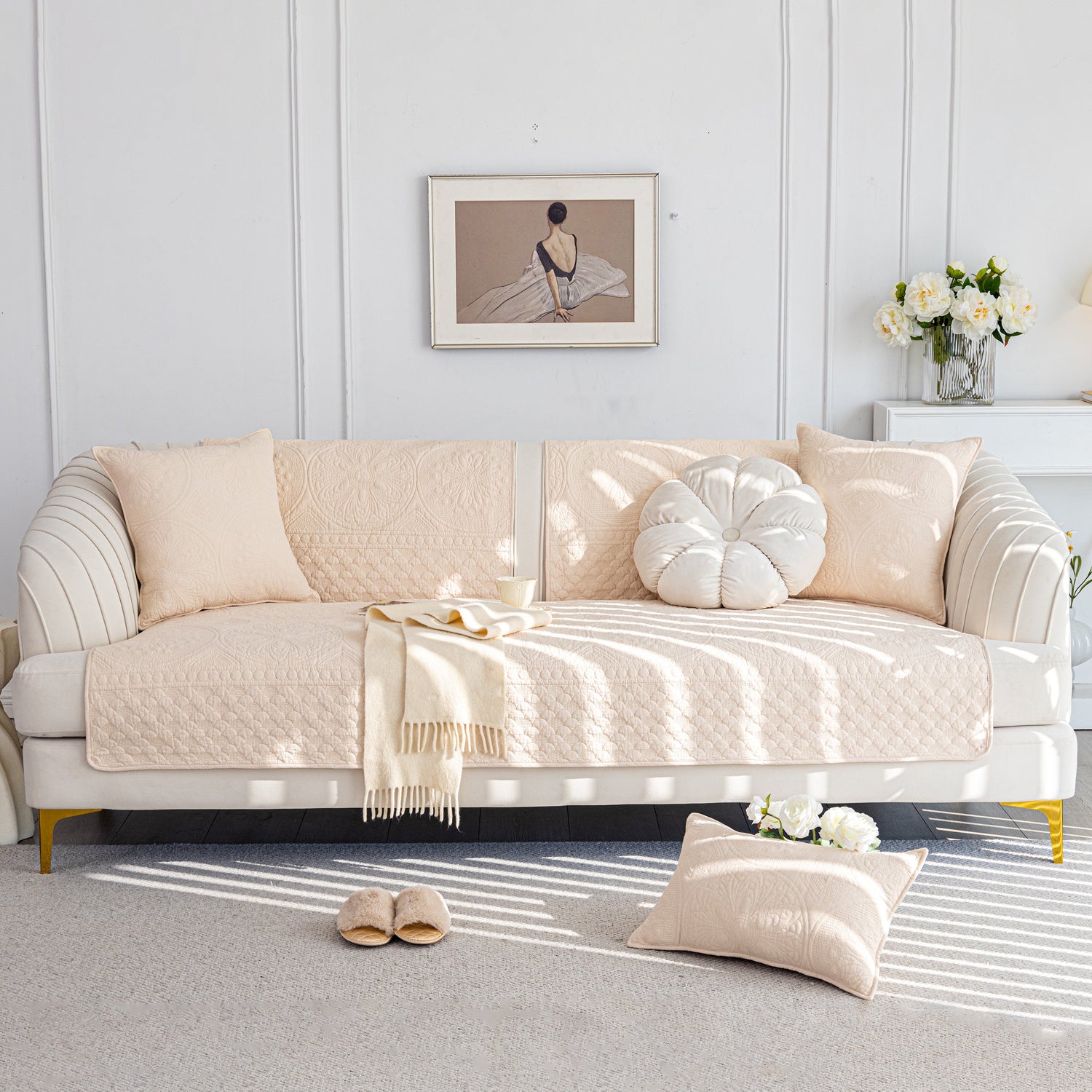 Designed in separate pieces for the backrest, seat, and armrests, this slipcover fits snugly on a variety of sofa styles and allows for easy removal and cleaning. The intricate quilted pattern adds a refined, decorative touch, making it as beautiful as it is practical. Whether you want to refresh an old sofa or preserve a new one, this cover brings warmth, texture, and all-season comfort to your home.