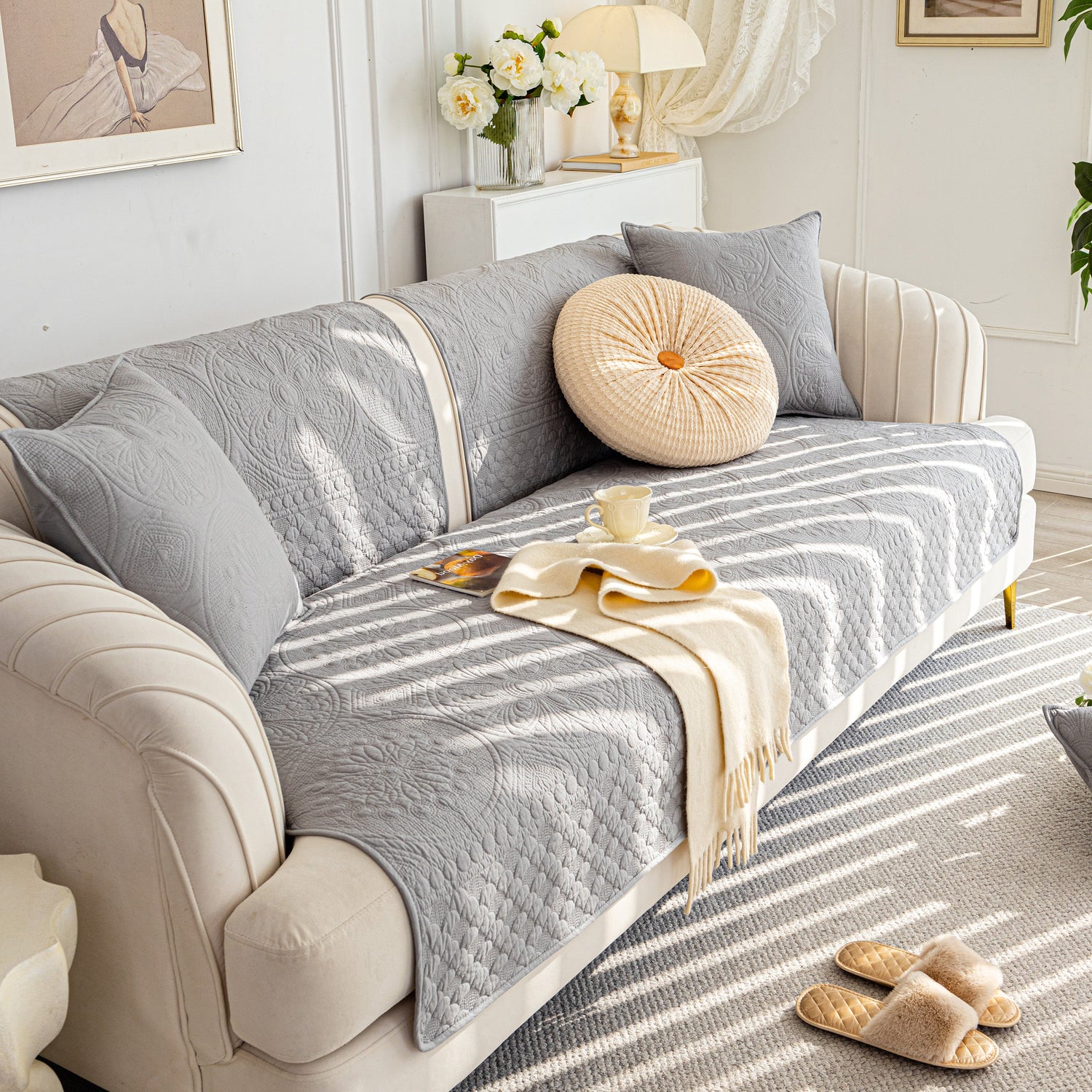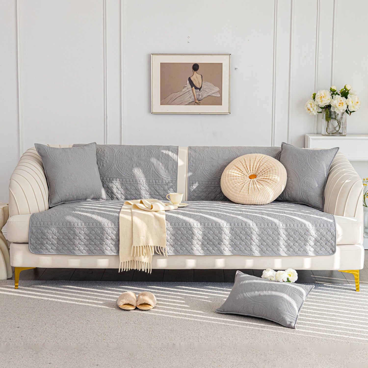 Cotton Quilted Sofa Cover, Non-Slip Couch Protector Fits Backrest, Seat & Armrest