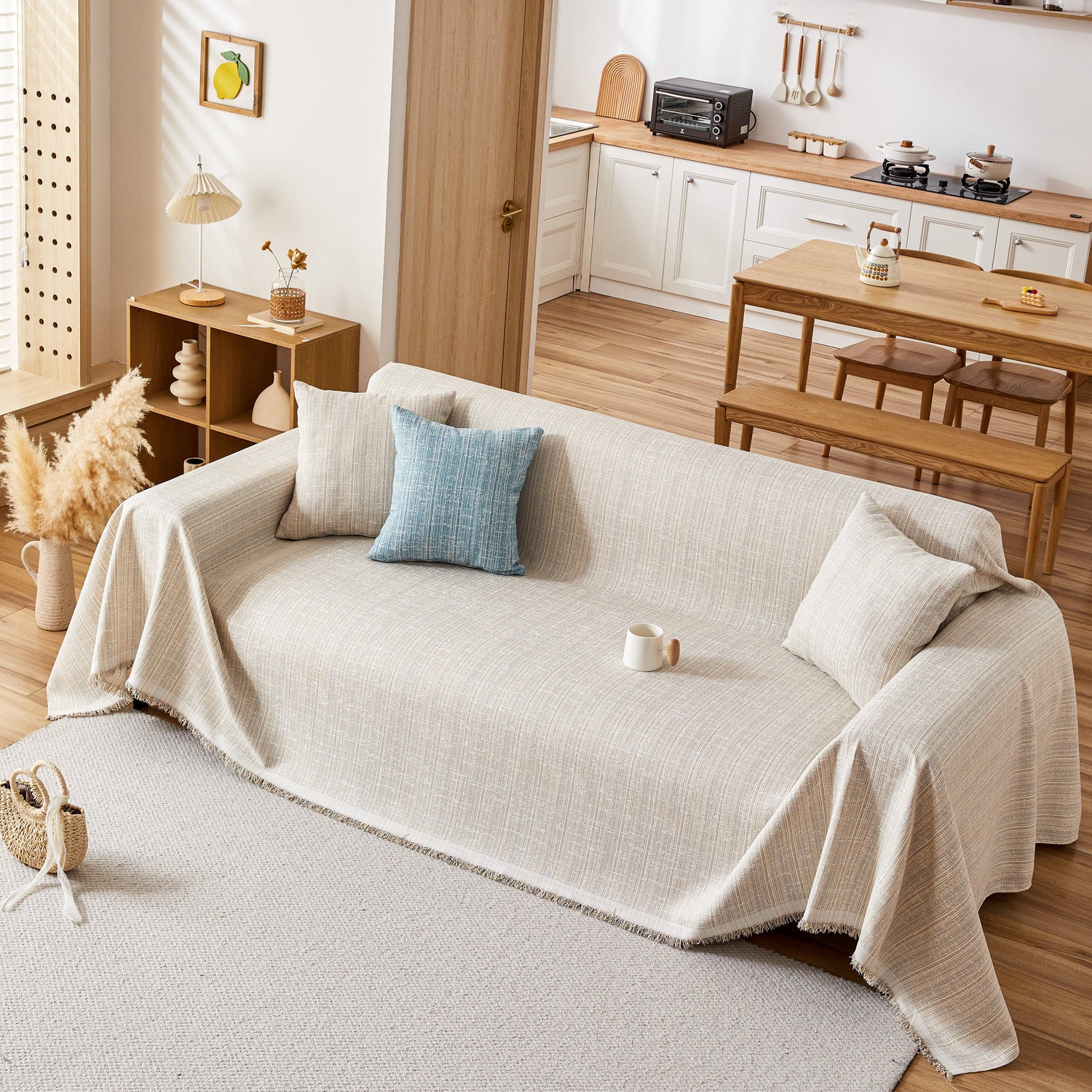 Love the effortlessly chic look of natural linen? Our sofa throw captures that same rustic, organic charm with its beautiful slub weave and richly textured feel. The delicate fringe adds a touch of relaxed elegance, making it the perfect piece to complete your Scandinavian, Wabi-Sabi, or Modern Farmhouse decor. It’s the timeless, natural aesthetic you've been looking for.