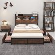 Full/Queen Size Bed Frame with Bookcase Headboard and 4 Storage Drawers-Full Size