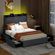 Full/Queen Size Bed Frame with LED Lights and Charging Station-Full Size