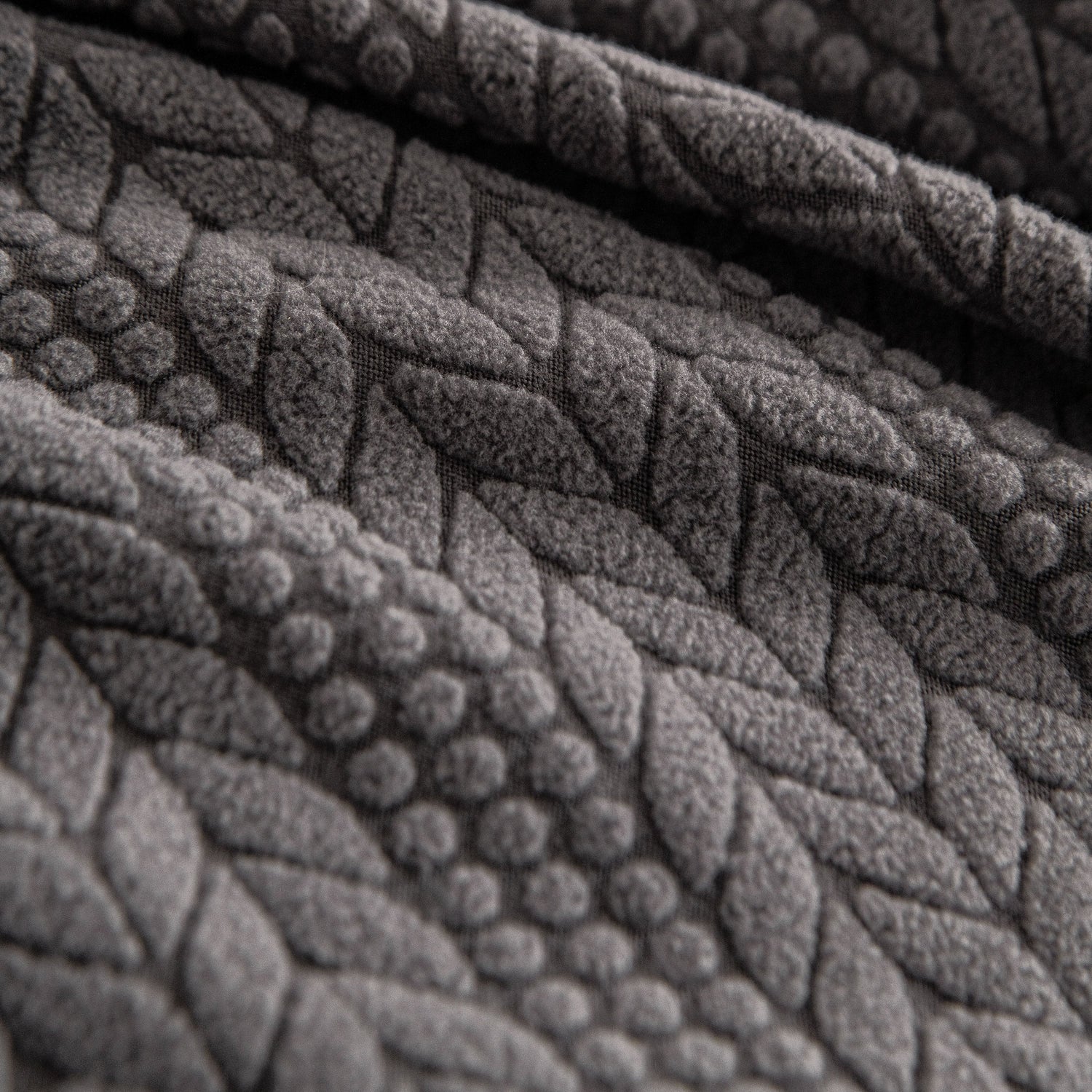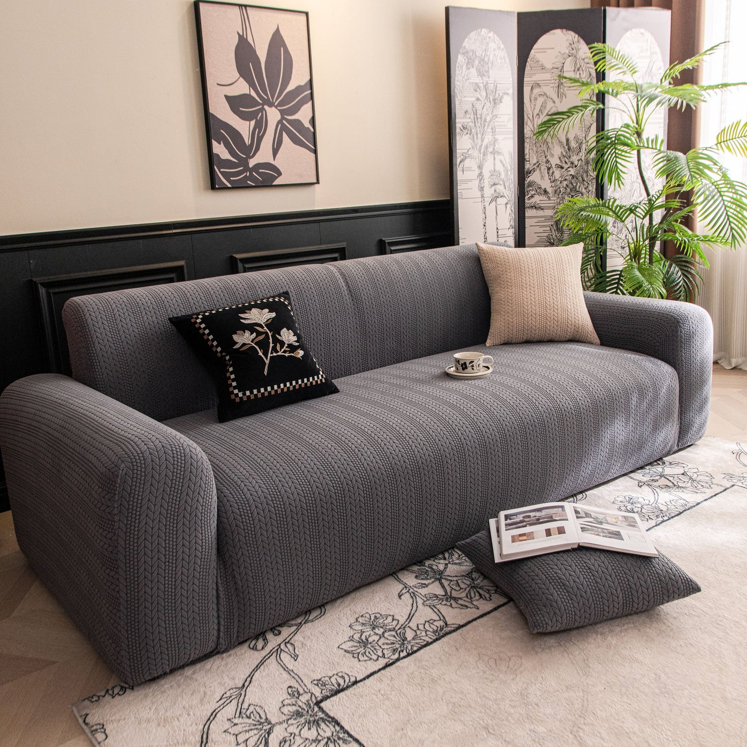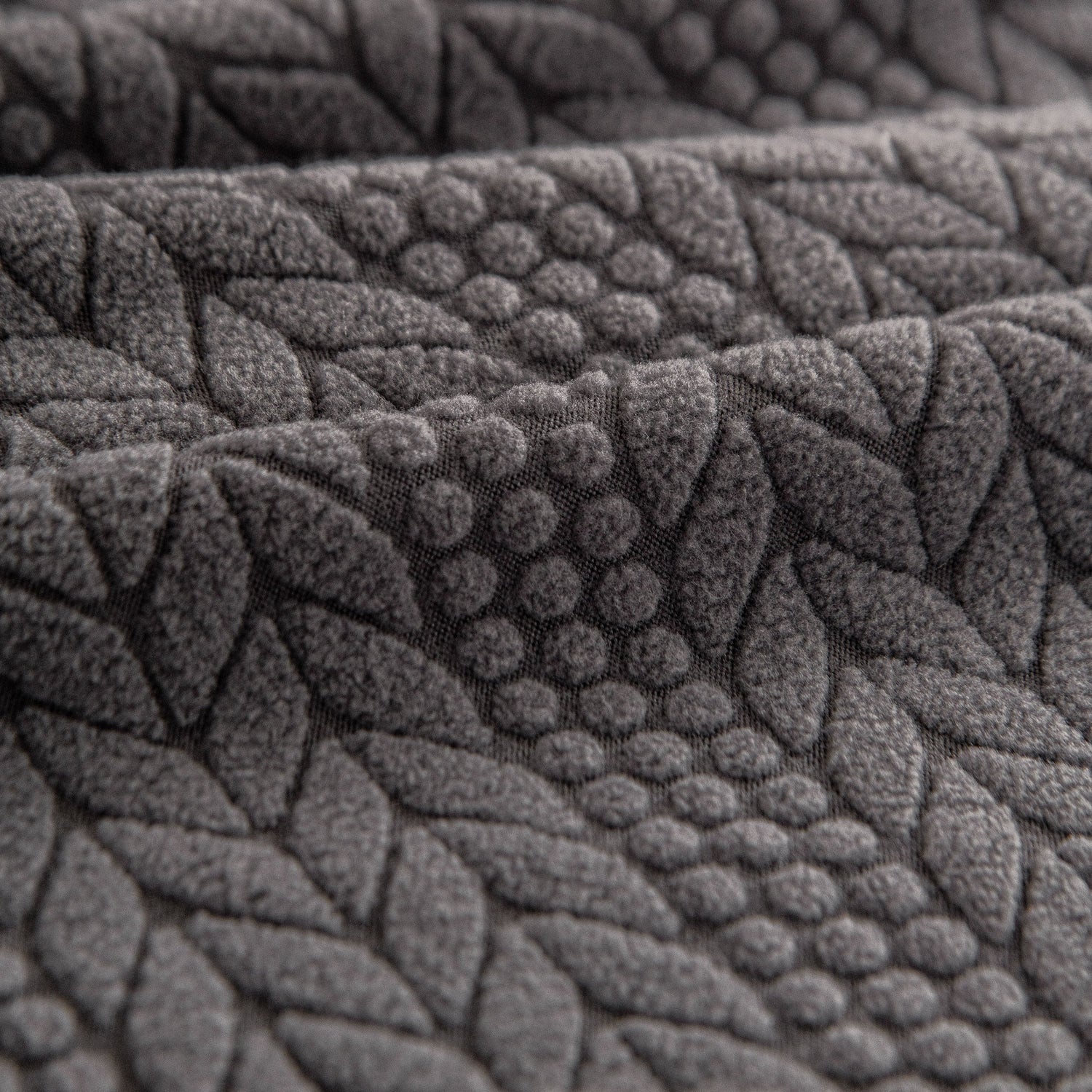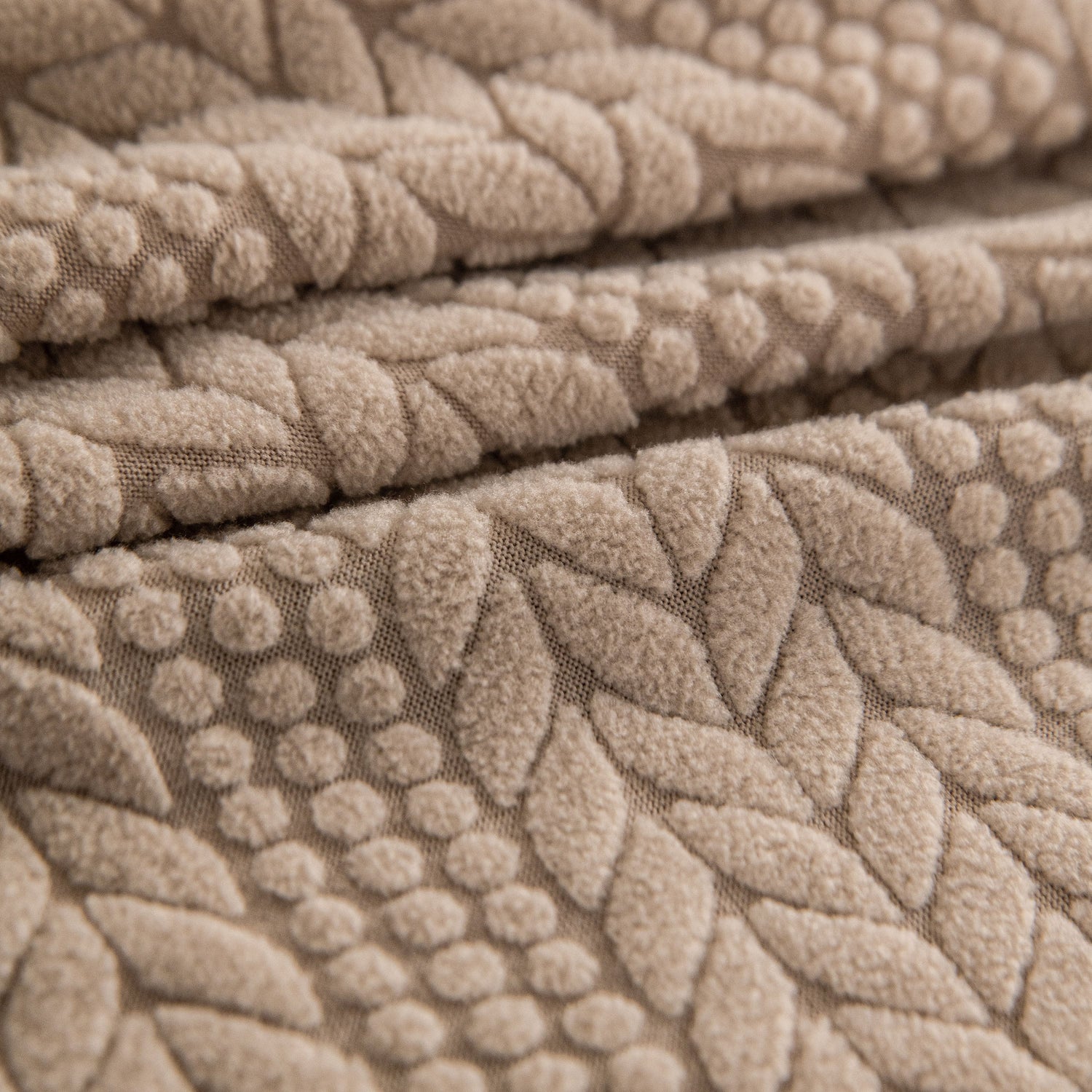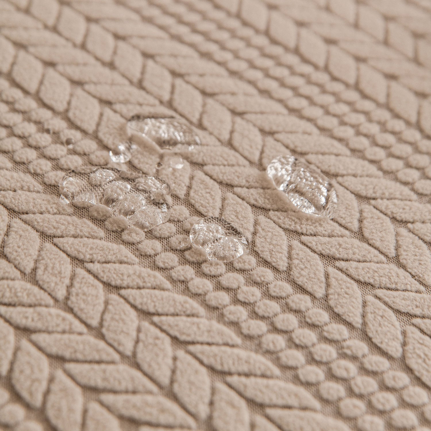 This sofa cover is constructed from polar fleece fabric, distinguished by a three-dimensional, embossed wheat ear texture. The material incorporates high-stretch fibers, which allows the cover to conform closely to various sofa shapes for a smooth, secure fit. The surface is treated with a water-repellent coating; this causes liquid spills to bead up on contact, allowing for immediate removal before they can be absorbed. An integrated elastic band along the bottom hem ensures the cover remains in place during use. Its primary function is to act as a protective barrier for your furniture against stains, pet fur, and daily wear.