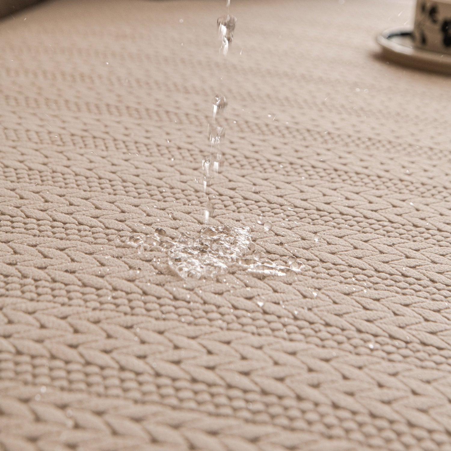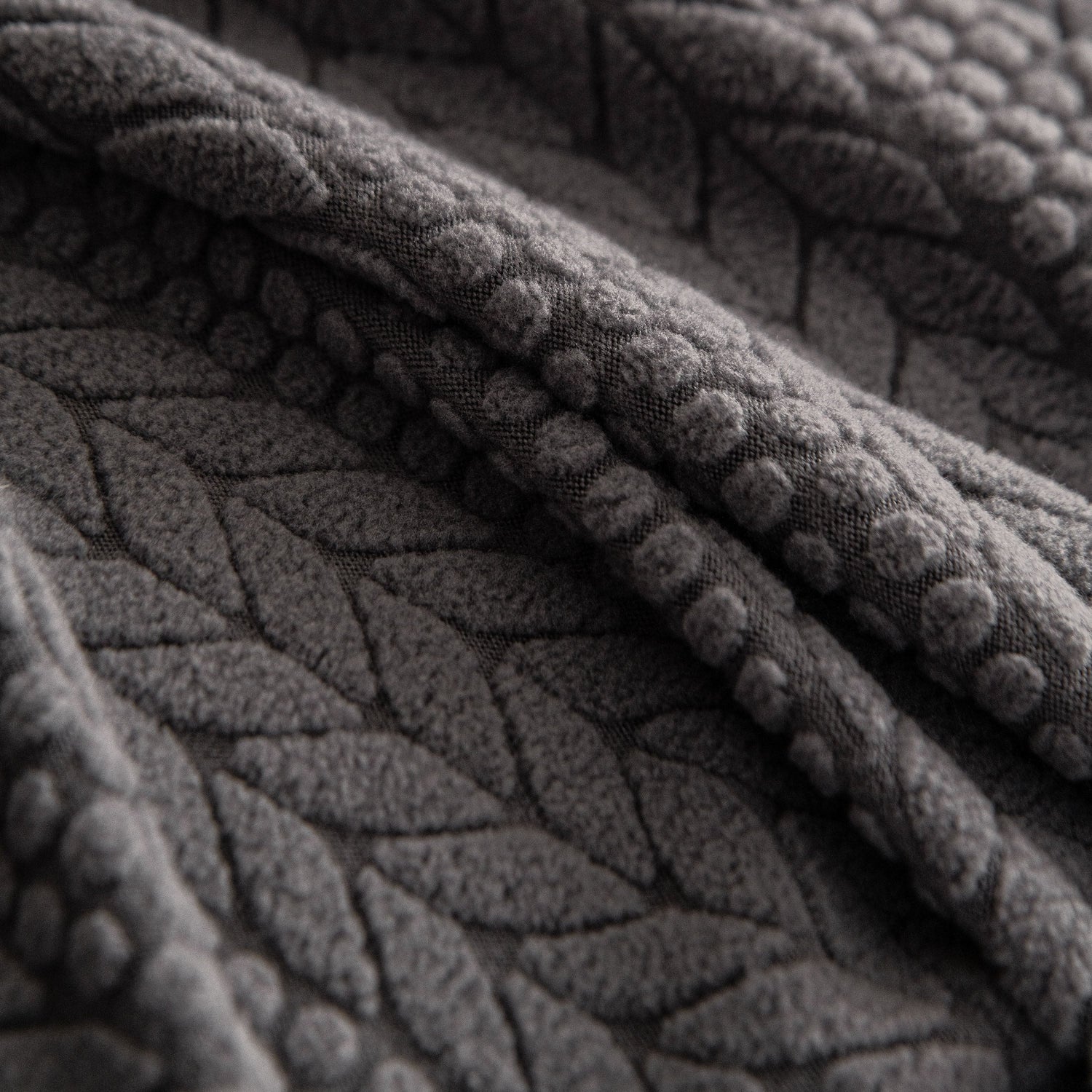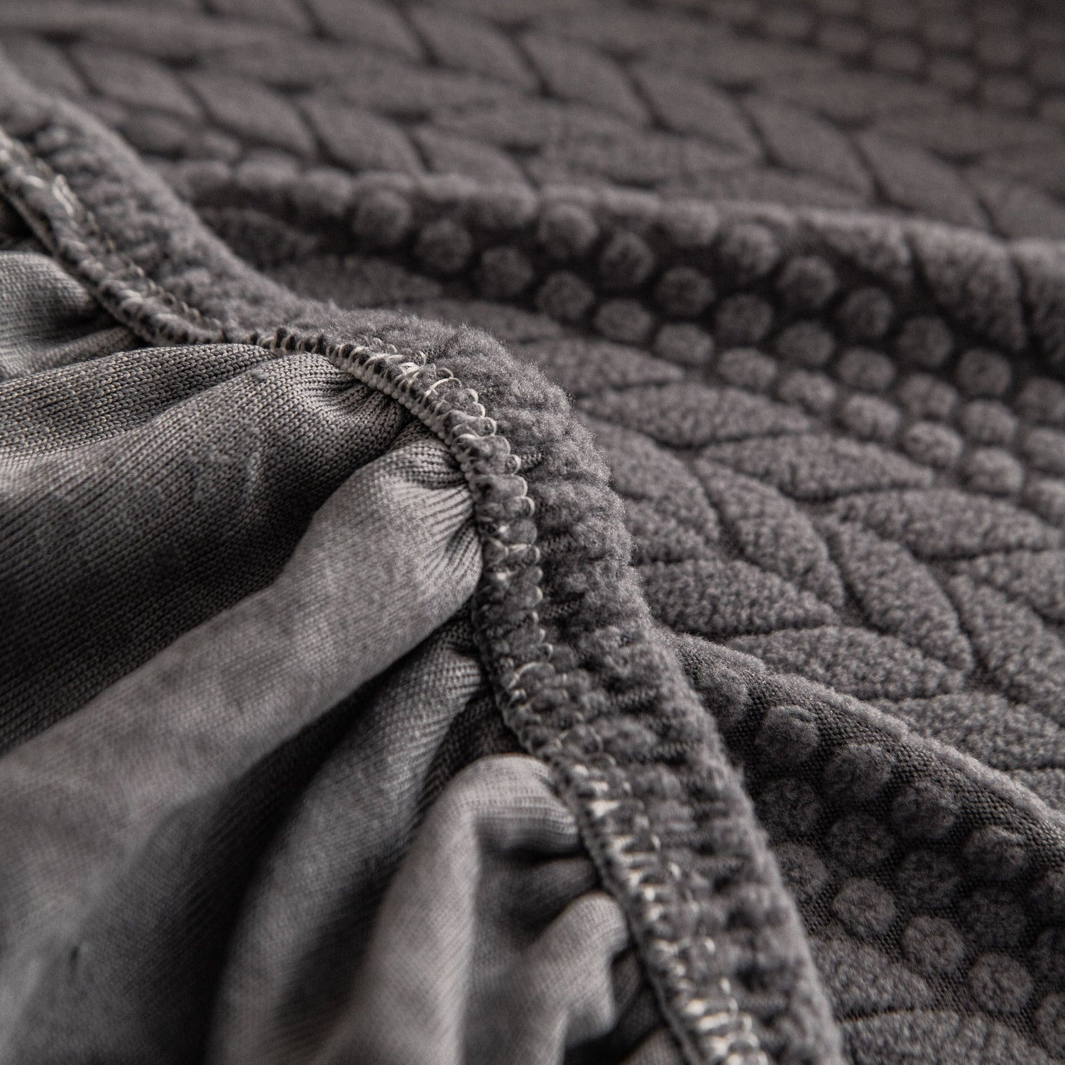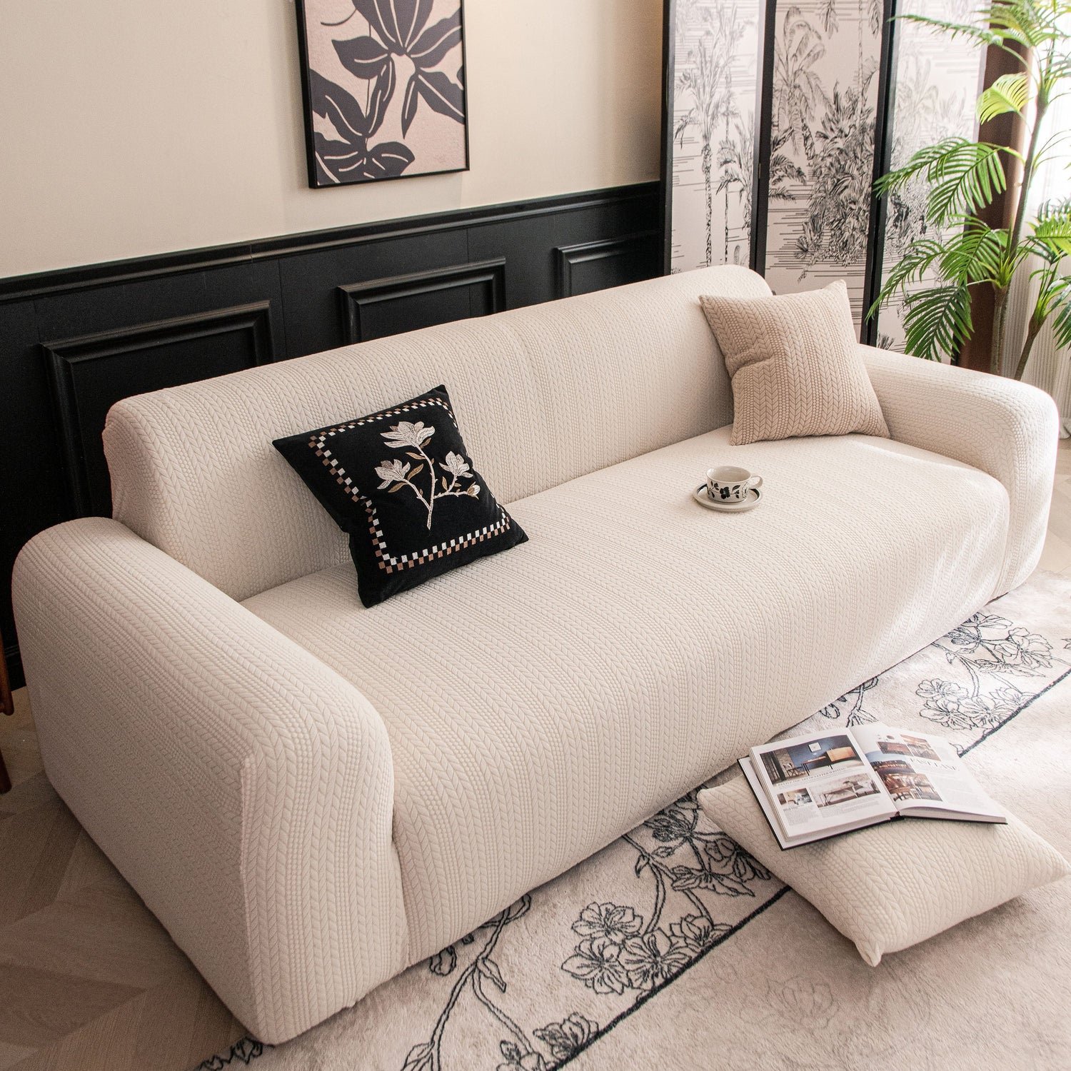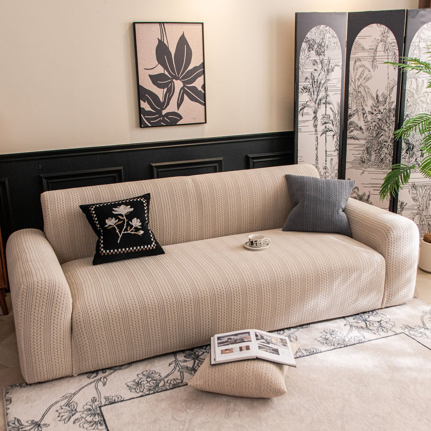 This sofa cover is constructed from polar fleece fabric, distinguished by a three-dimensional, embossed wheat ear texture. The material incorporates high-stretch fibers, which allows the cover to conform closely to various sofa shapes for a smooth, secure fit. The surface is treated with a water-repellent coating; this causes liquid spills to bead up on contact, allowing for immediate removal before they can be absorbed. An integrated elastic band along the bottom hem ensures the cover remains in place during use. Its primary function is to act as a protective barrier for your furniture against stains, pet fur, and daily wear.