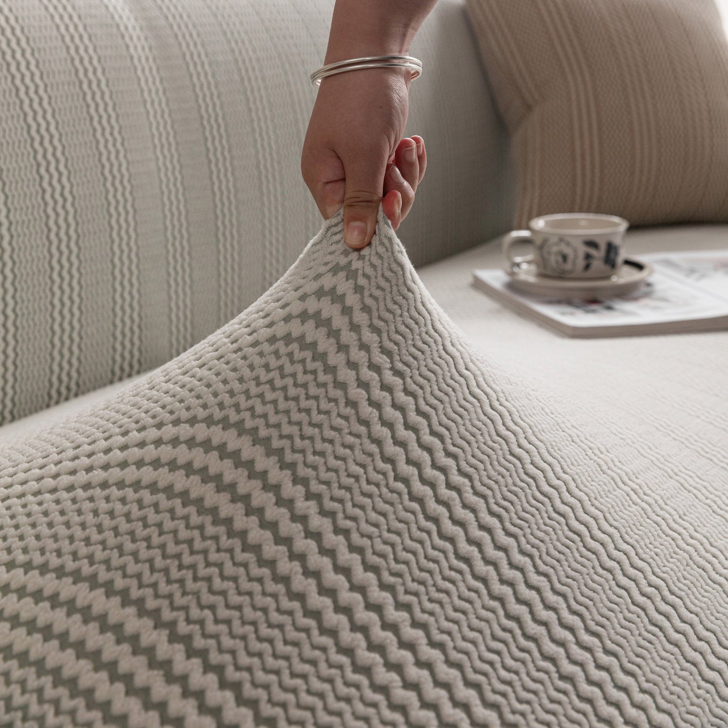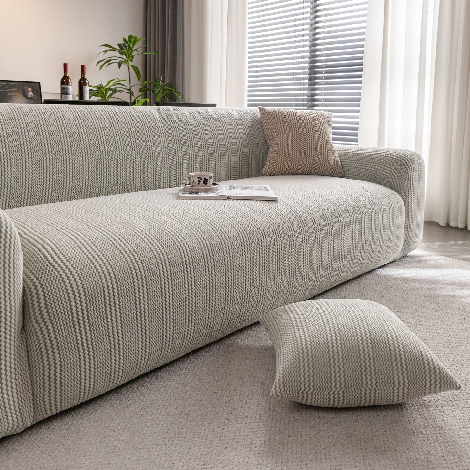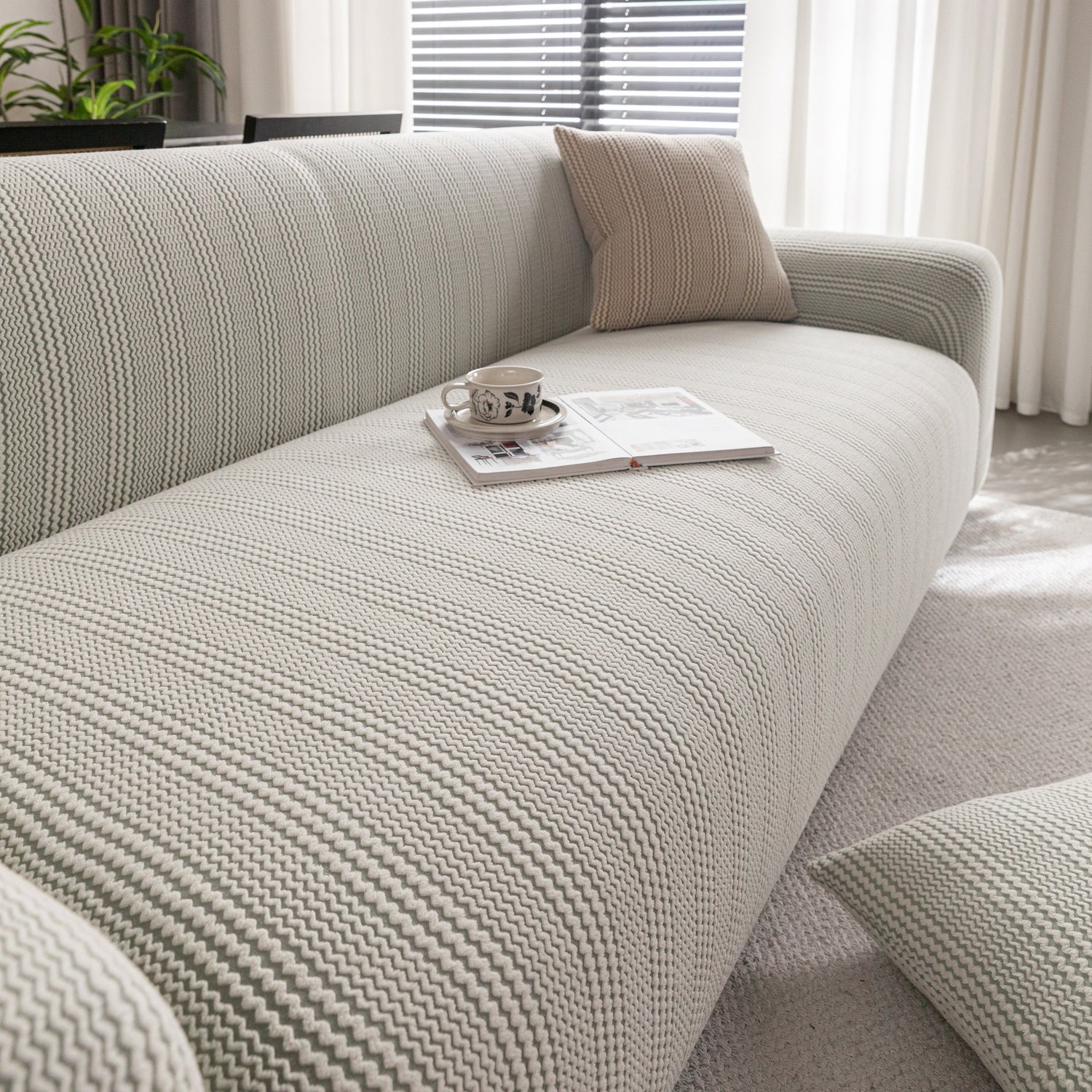 Modern Textured Stretch Sofa Cover, Plush Fleece Sofa Slipcover with 3D Stripe Texture