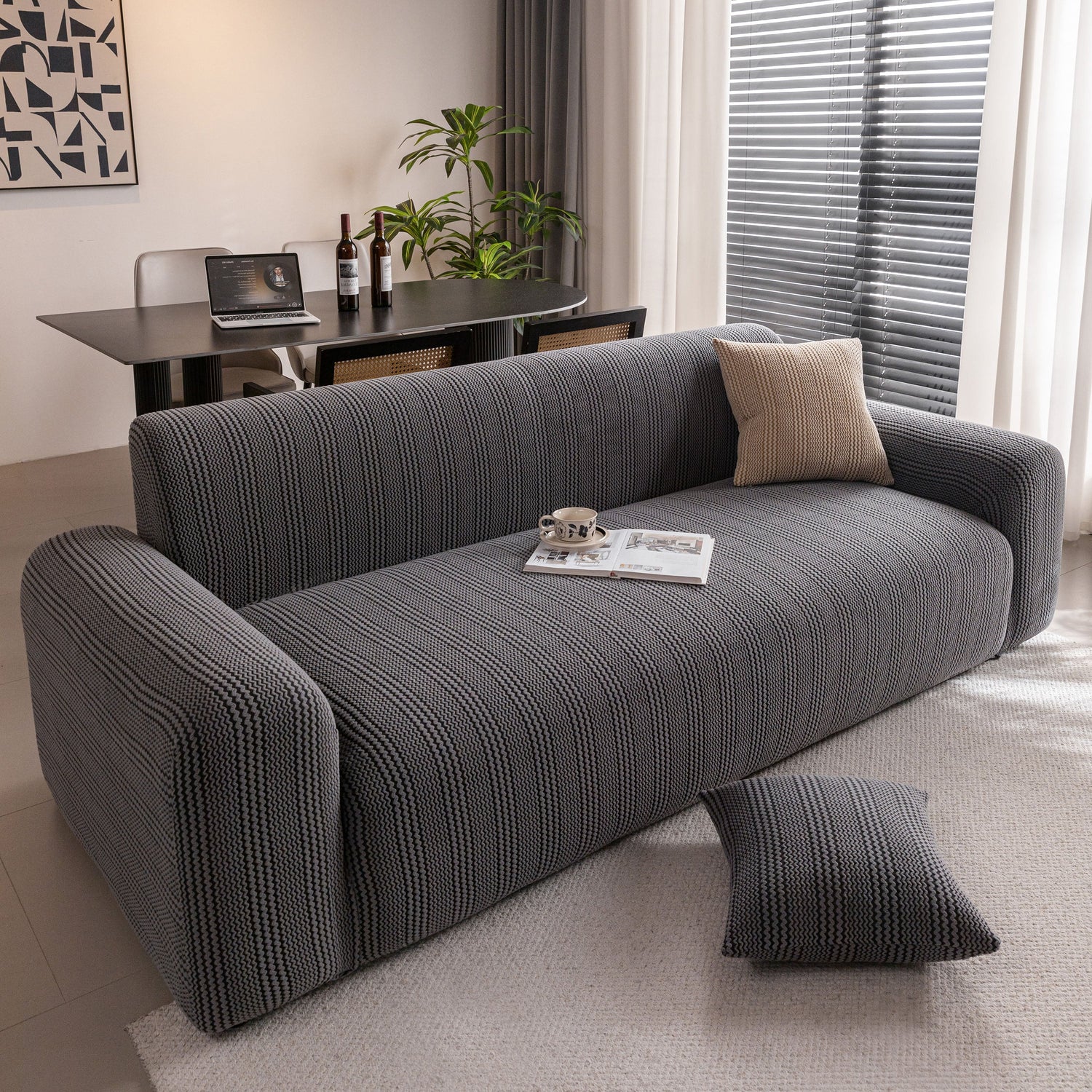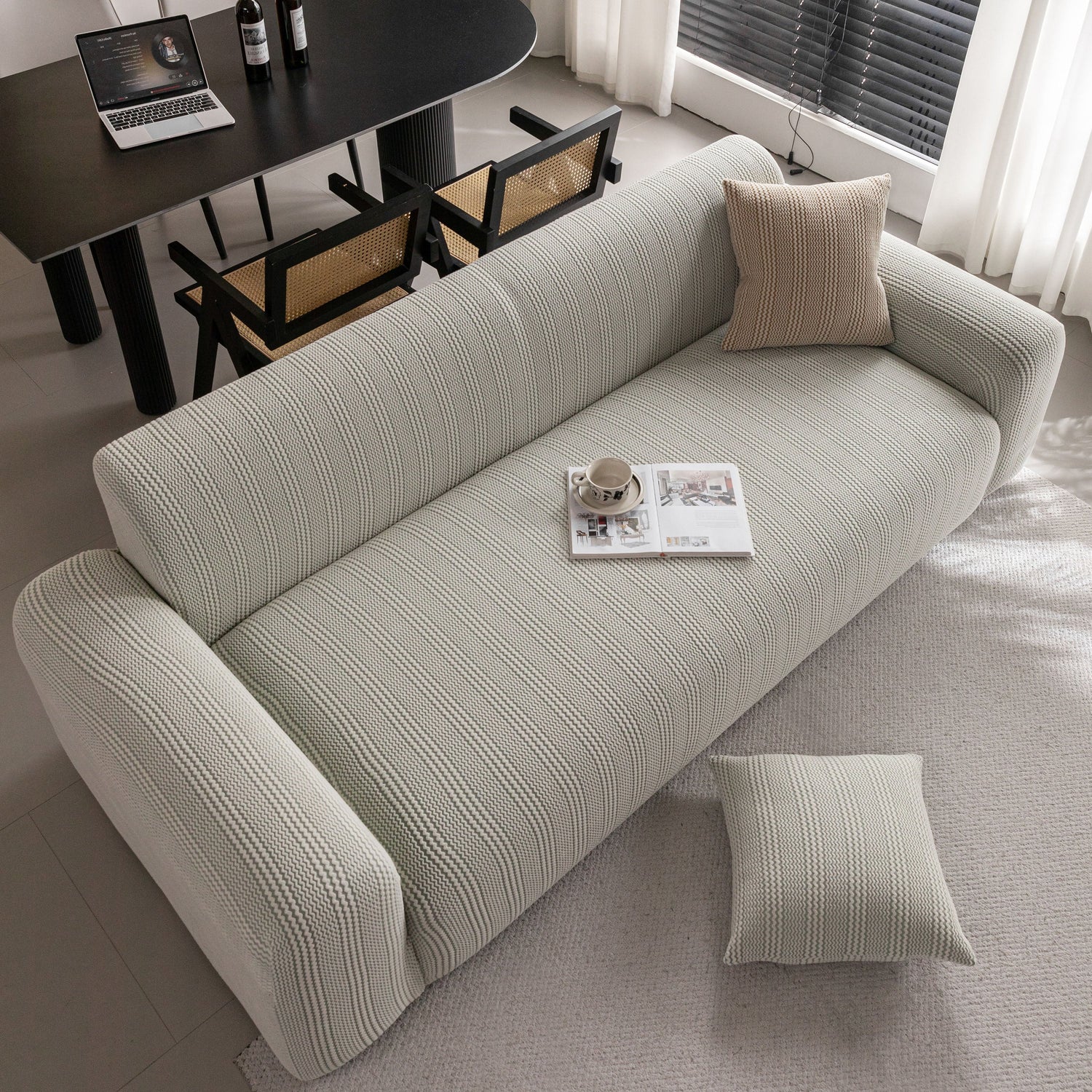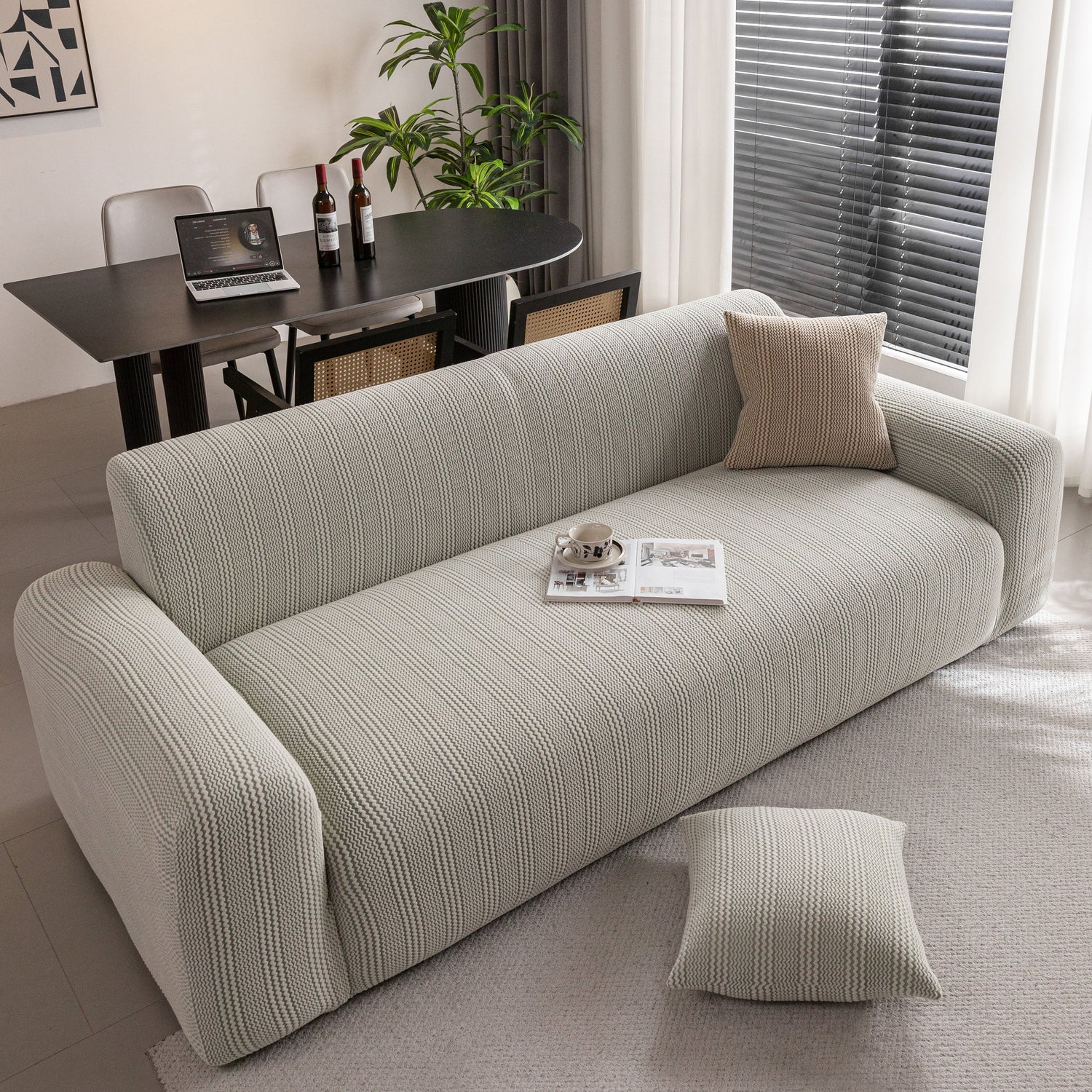 Modern Textured Stretch Sofa Cover, Plush Fleece Sofa Slipcover with 3D Stripe Texture