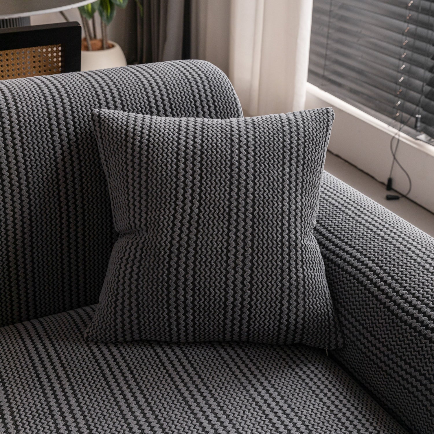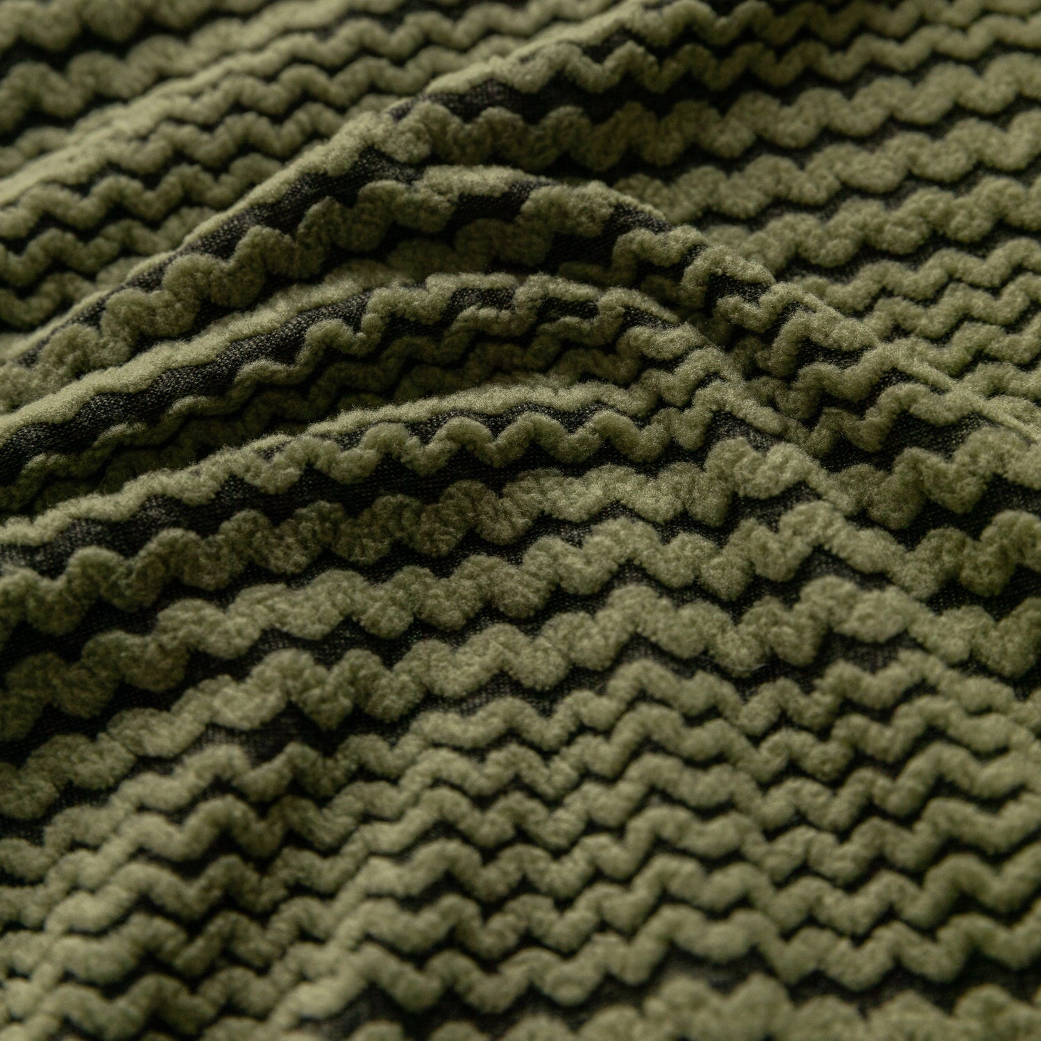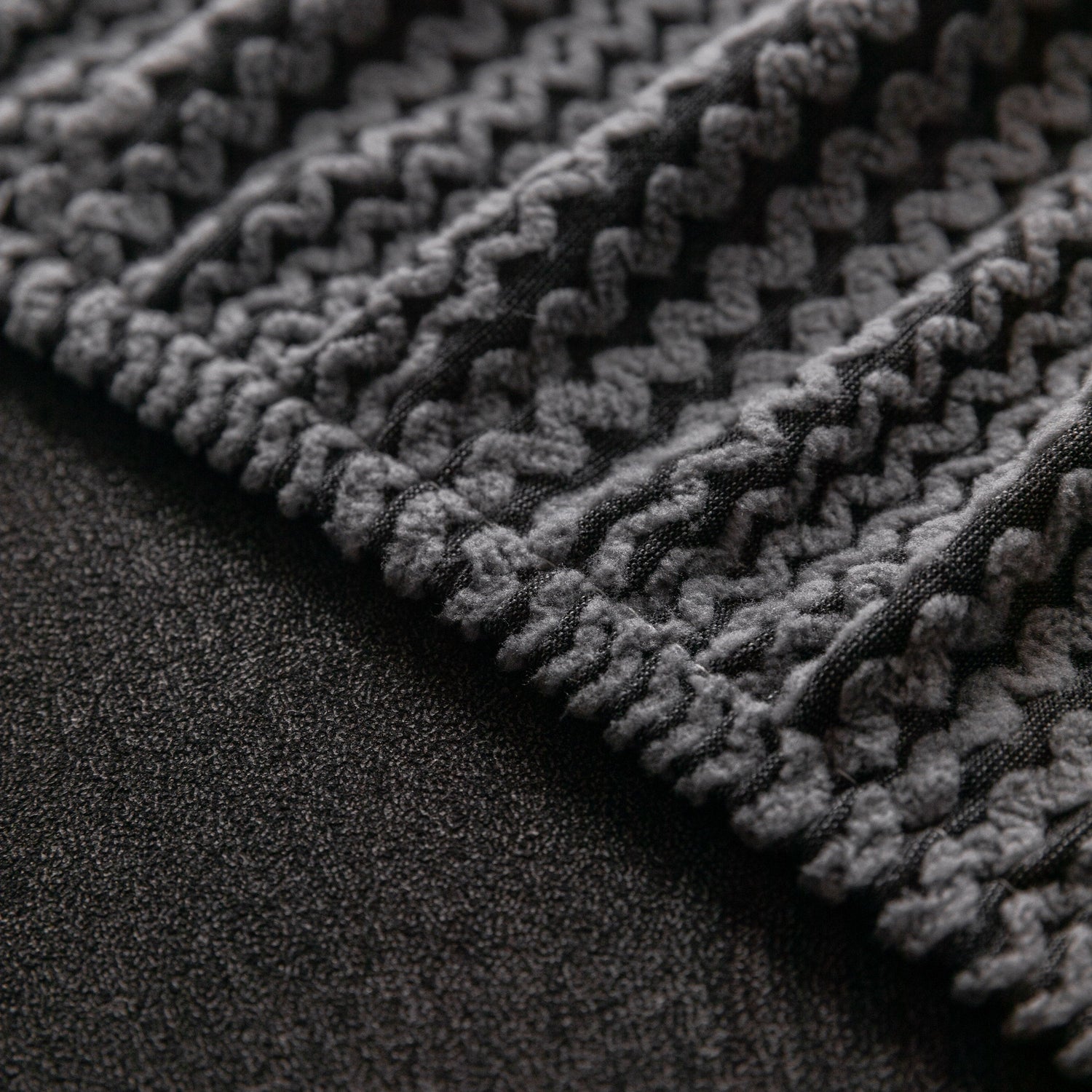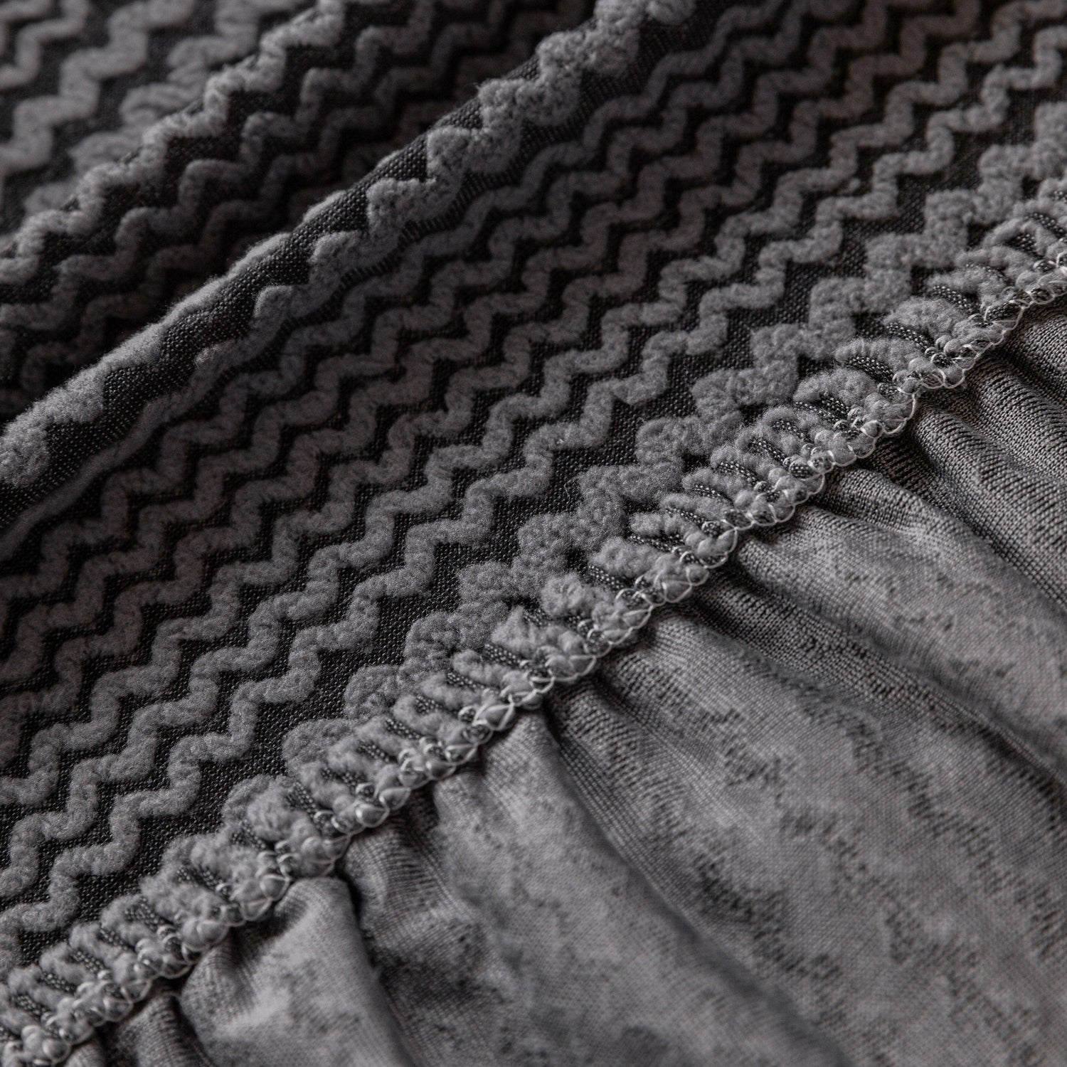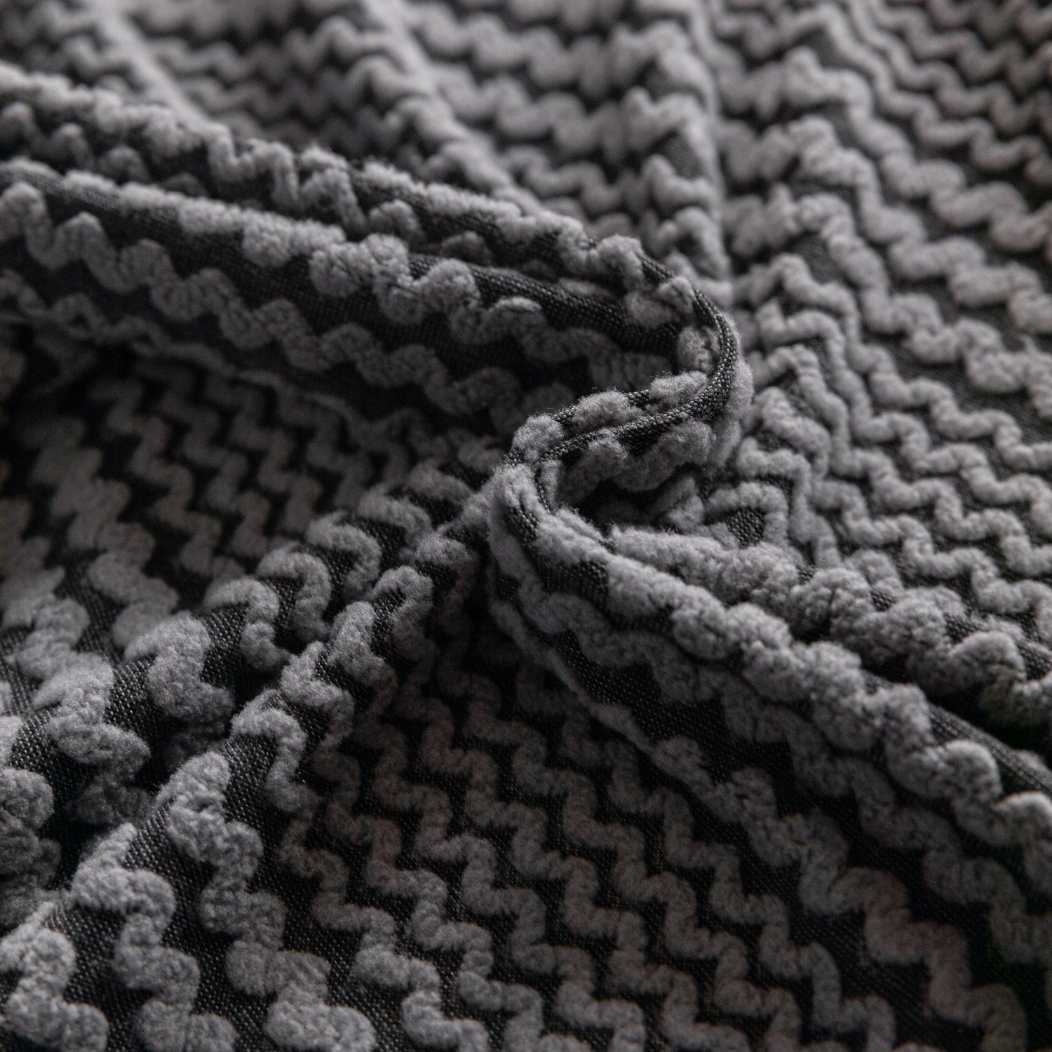 This slipcover is crafted from a high-quality polar fleece, distinguished by its unique 3D texture. A modern wavy stripe zigzag pattern is woven directly into the fabric using a high-low pile technique, creating a visually distinct and pleasantly tactile surface. Functionally, the material is a durable blend of polyester and spandex, providing significant stretch for a form-fitting result. A robust, all-around elastic hem works in tandem with included foam anchors to ensure a smooth, non-slip fit that stays securely in place. The thick fabric offers excellent protection against daily wear, pets, and stains, and is fully machine washable for straightforward maintenance.