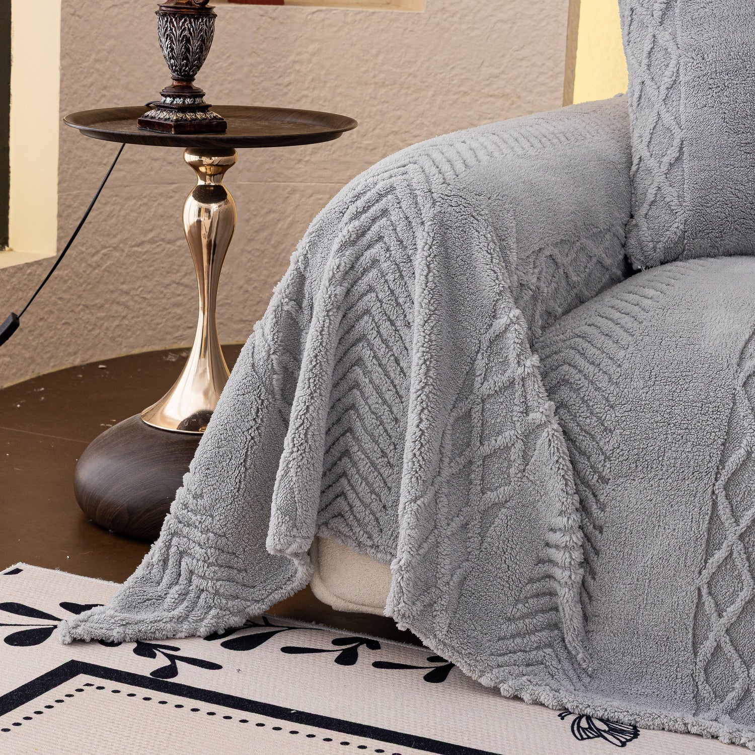 Plush Fleece Sofa Cover with 3D Cable Knit Texture Soft Cozy Warm Sofa Throw Blanket
