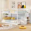 Solid Wood Full Over Full Low Bunk Bed with Storage Stairs-White