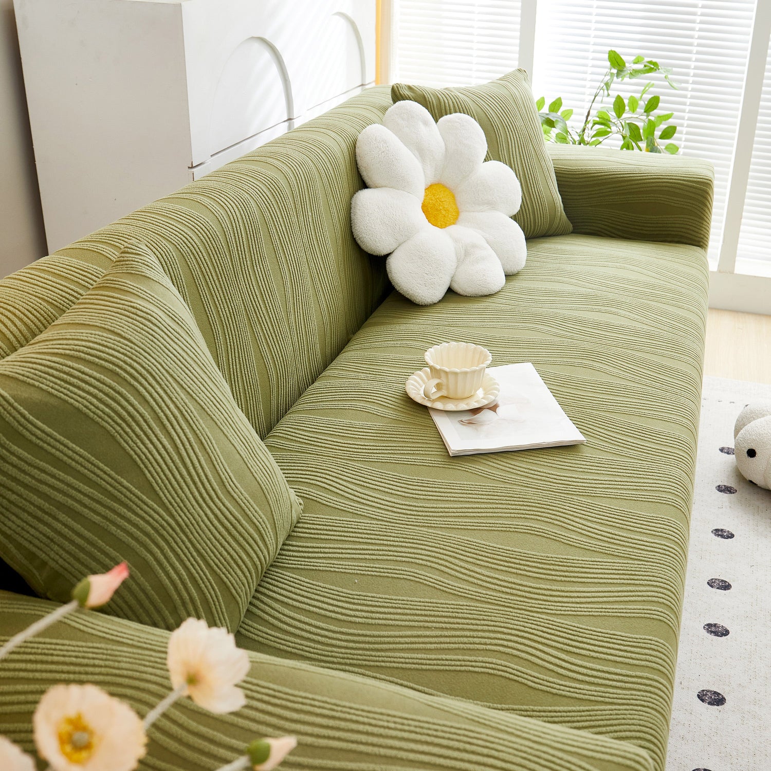 Textured Wave Stretch Sofa Couch Cover, Soft Washable Spandex Furniture Slipcovers