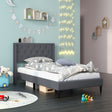 Twin Size Upholstered Platform Bed with Button Tufted Wingback Headboard-Gray