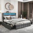 Upholstered LED Bed Frame with Headboard and 4 Drawers-Full Size