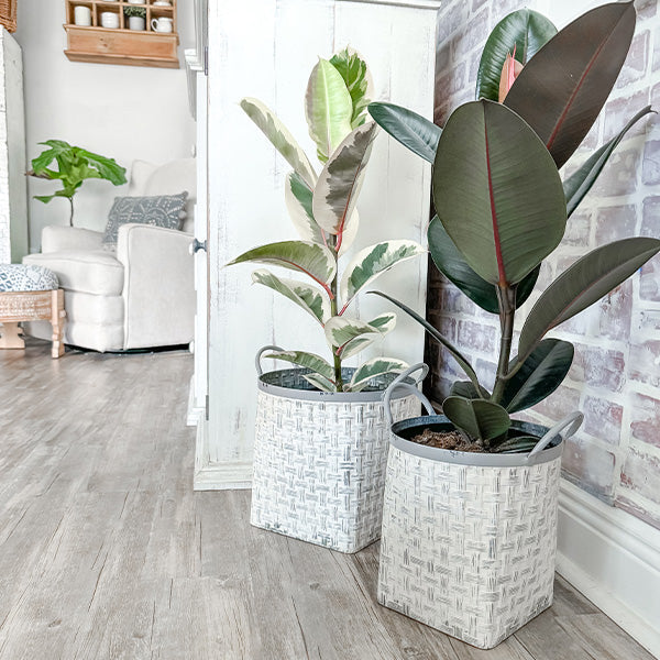These Whitewashed Woven Metal Baskets are a perfect blend of style and functionality, making decorating easy and affordable. Their elegant design and practical size make them an excellent addition to any decor space. Whether you're looking to add a burst of color with dried flowers or a festive touch with holiday greens, these baskets have got you covered. If you choose to use them with live plants, remember to add a liner to prevent water damage and ensure their longevity. Don’t miss out on this perfect deal that offers both charm and value!