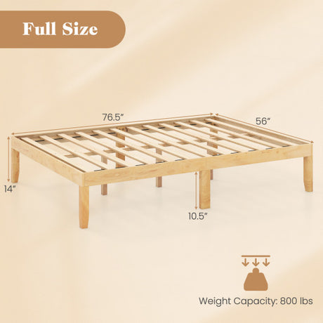 Full Size Wood Bed Frame with Wooden Slats Support and Rubber Wood Legs-Natural
