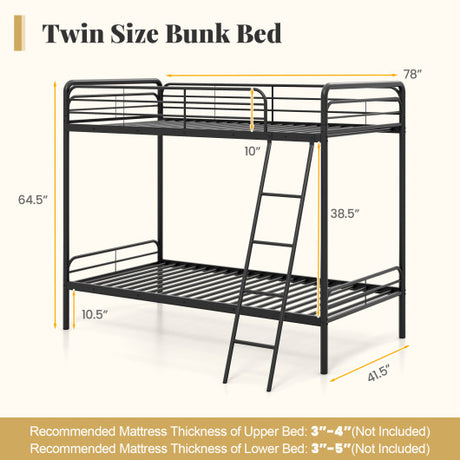 Heavy Duty Metal Bunk Bed with Ladder and Safety Guardrails-Black