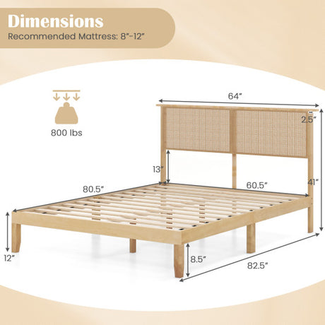 Twin/Full/Queen Size Bed Frame with Rattan Headboard-Queen Size