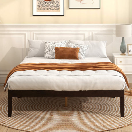 Queen Size Wood Bed Frame with Wooden Slats Support and Rubber Wood Legs-Espresso
