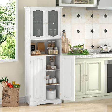 64.5 Inches Tall Bathroom Storage Cabinet with Frost Glass Doors and Shelves-White