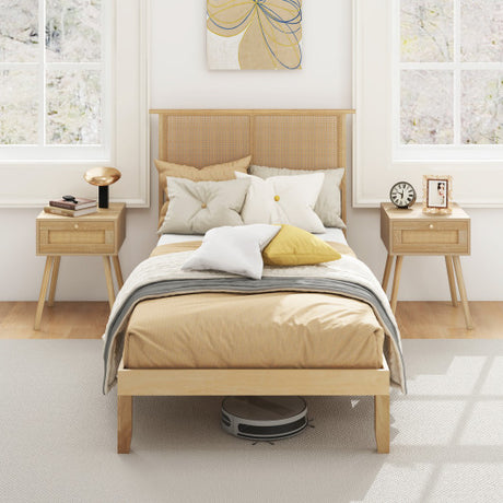 Twin/Full/Queen Size Bed Frame with Rattan Headboard-Twin Size
