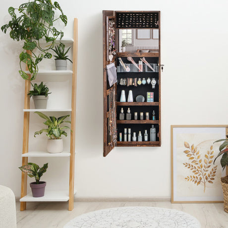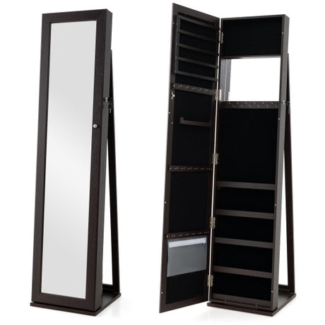 Standing Lockable Jewelry Storage Organizer with Full-Length Mirror-Coffee