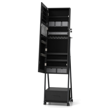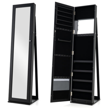 360 ° Rotatable 2-in-1 Lockable Jewelry Cabinet with Full-Length Mirror-Black