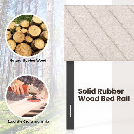 Linen Upholstered Headboard with Solid Wood Legs and Adjustable Width-Beige
