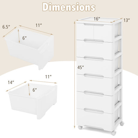 Rolling Storage Cabinet with Universal Wheels and 5/6/7 Drawers-6-Drawer