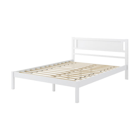 Wooden Platform Bed with Headboard and Slat Support-Queen Size