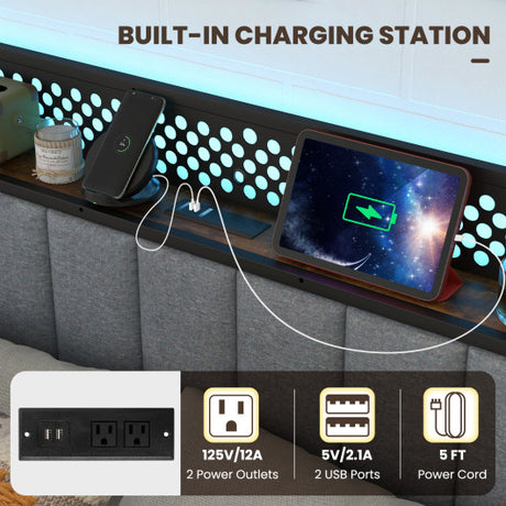 Twin/Full/Queen Bed Frame with LED Lights Upholstered Headboard and 4 Storage Drawers-Queen Size
