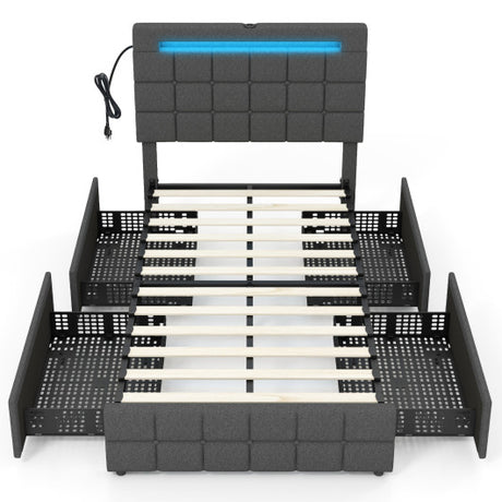 Upholstered LED Bed Frame with Headboard and 4 Drawers-Twin Size