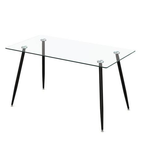 Modern Glass Rectangular Dining Table with Metal Legs-Black