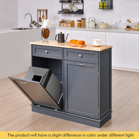 Rubber Wood Kitchen Trash Cabinet with Single Trash Can Holder and Adjustable Shelf-Gray