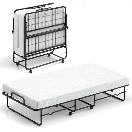 Twin Size Folding Bed with Memory Foam Mattress and Heavy-duty Metal Frame