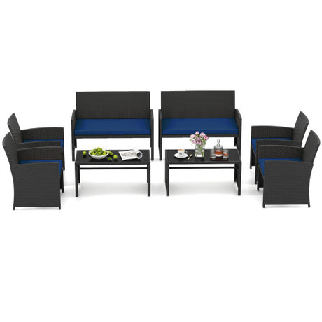 4 Pieces Patio Furniture Set with Tempered Glass Tabletop and Removable Cushion-Navy