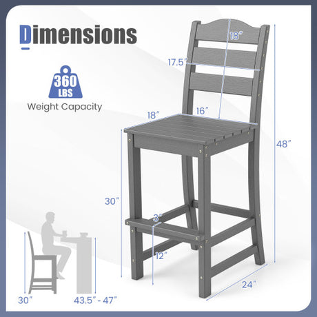 Set of 2 30 Inches HDPE Outdoor Counter Height Bar Stools with Backs-Gray