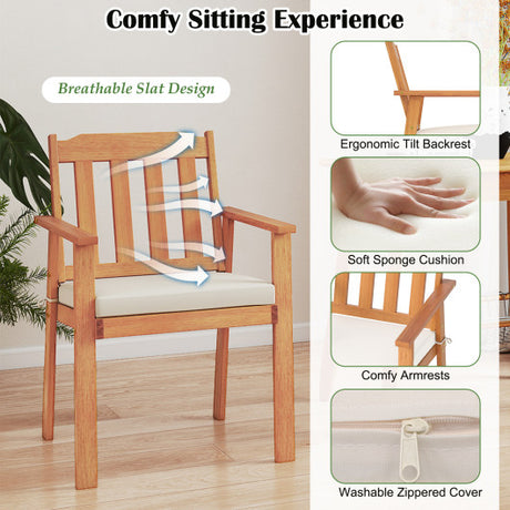 Outdoor Wood Armchair Wooden Patio Dining Chair with Armrests-Brown