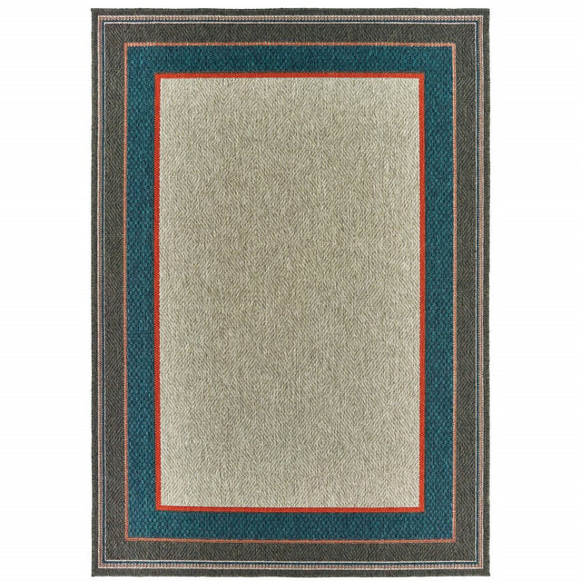 10' X 13' Blue and Gray Stain Resistant Indoor Outdoor Area Rug