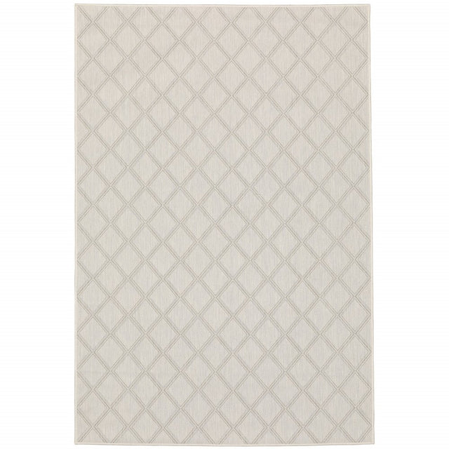 10' X 13' Gray and Ivory Geometric Stain Resistant Indoor Outdoor Area Rug