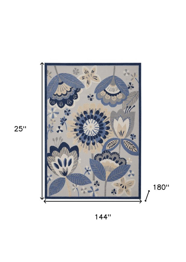 12' X 15' Blue And Gray Indoor Outdoor Area Rug
